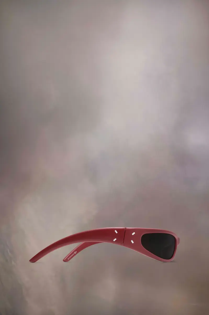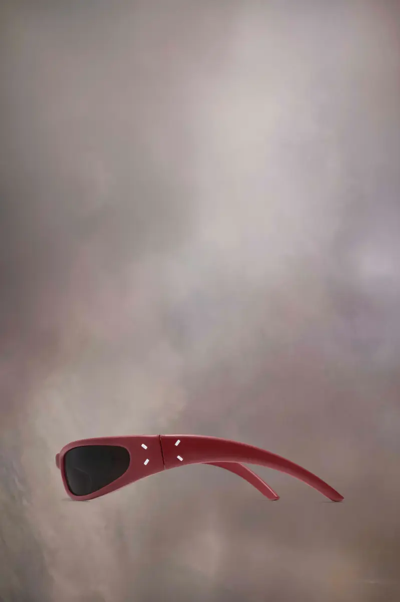 Fusing the classic and futuristic, an ethos which unites both Maison Margiela and Gentle Monster, the MM203 LEATHER LR1 sunglasses are presented in mono colour with a wraparound design for a cyber-inspired silhouette. They are crafted with a leather-look finish for a bold yet minimal take. Maison Margiela’s signature, the Four Stitches, appear at the temples; the opposite of a label.