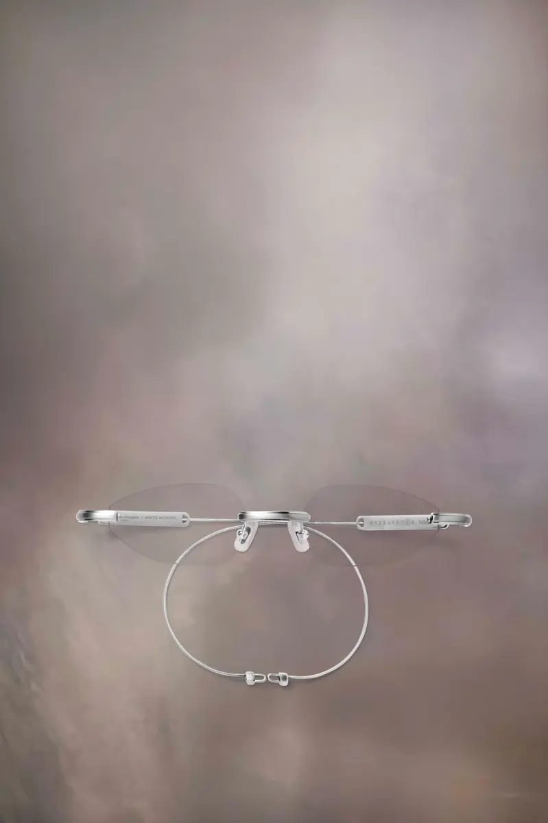The third Maison Margiela x Gentle Monster collaboration is rooted at the intersection of classicism and futurism. The MM219 A02 glasses feature an angular front and a cable temple; originally designed to prevent slipping, now reimagined beyond functionality to express a fresh yet sophisticated aesthetic. The design is complete with industrial hardware details and the Maison Margiela logo engraved onto metal plates.