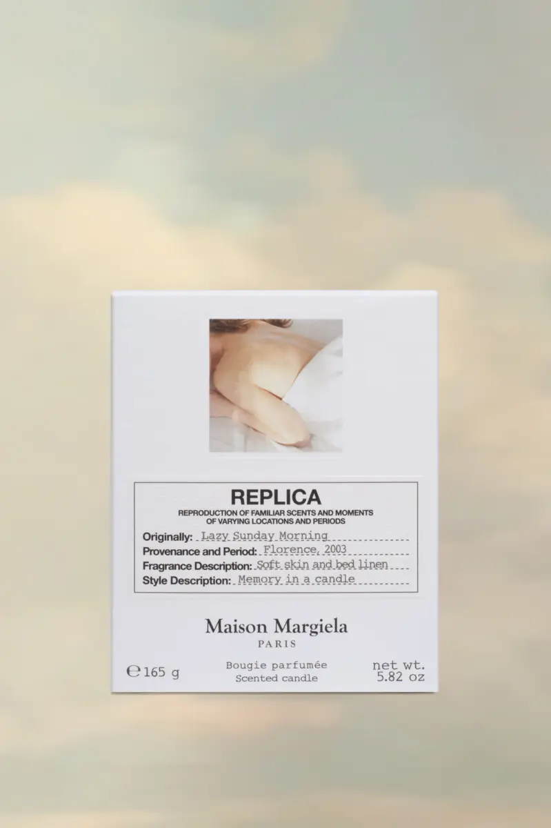 “Replica Lazy Sunday Morning candle evokes the soft sensation of freshly washed linen sheets on a sunny morning. Clean, fresh and comforting, the immaculate light gently warms your skin. Made from high quality mineral wax, this cotton wick candle lasts up to 40 hours. Size 165g. The Replica collection assembles iconoclast fragrances that have the universal power to trigger personally cherished moments. In line with the Maison’s minimalistic approach, the Replica candle is simple yet sophisticated. A cotton label, resembling the tags used on clothing and accessories for the Replica fashion collection, identifies each fragrance.”