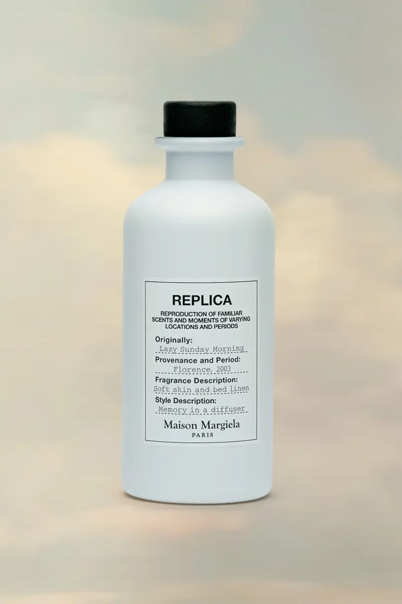 Replica Lazy Sunday Morning scented diffuser evokes the soft sensation of freshly washed linen sheets on a sunny morning. Clean, fresh and comforting, the immaculate light gently warms your skin. With a floral musky scent, the memory of crisp sheets is recreated with lily of the valley and white musks. The warming sunlight is presented through iris and ambrette seeds. The diffusion of the scent is continuous during 4 months with no action required and the intensity of the diffusion can be adjusted by modifying the number of sticks. Size 185ml. The Replica collection assembles iconoclast fragrances that have the universal power to trigger personally cherished moments. In line with the Maison’s minimalistic approach, the Replica diffuser is simple yet sophisticated. A label resembling the tags used on clothing and accessories for the Replica fashion collection, identifies each fragrance.