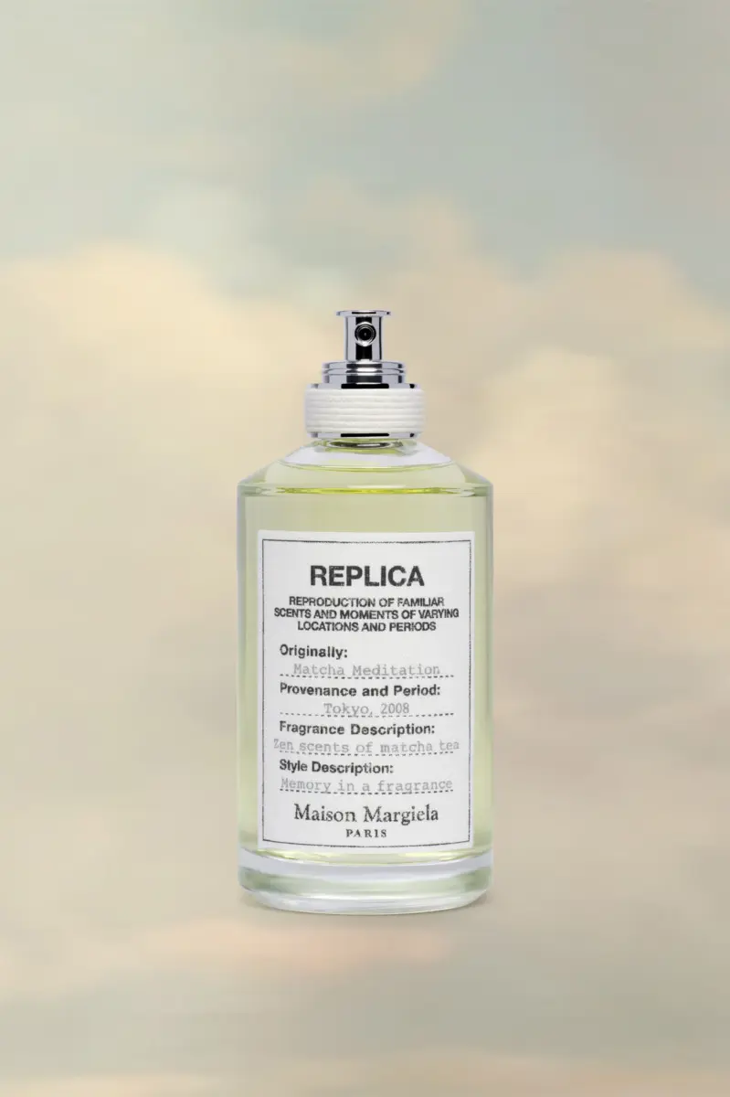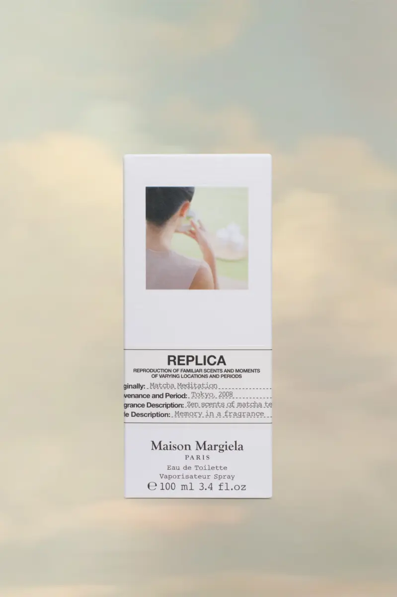“Replica Matcha Meditation eau de toilette conjures a peaceful moment with oneself, at home, on a bright afternoon. With senses awakened and feeling every gesture, focused on the now, the scent transports you by the soothing steam of a warm cup of matcha tea. The Zen scents feature top notes of bergamot essence and green tea accord, with middle notes of matcha accord and jasmine, and base notes of moss accord and cedar essence. Size 100ml. The Replica collection assembles iconoclast fragrances that have the universal power to trigger personally cherished moments. True to its ‘creative collective’ approach, Maison Margiela collaborates with the best perfumers, chosen for their genuine connection with the memory, stimulated by the artistic performance of composing a fragrance asa universal invitation to awaken, celebrate and share unforgettable feelings and emotions. In line with the Maison’s minimalistic approach, the Replica bottle is simple yet sophisticated. A cotton label, resembling the tags used on clothing and accessories for the Replica fashion collection, identifies each fragrance.”
