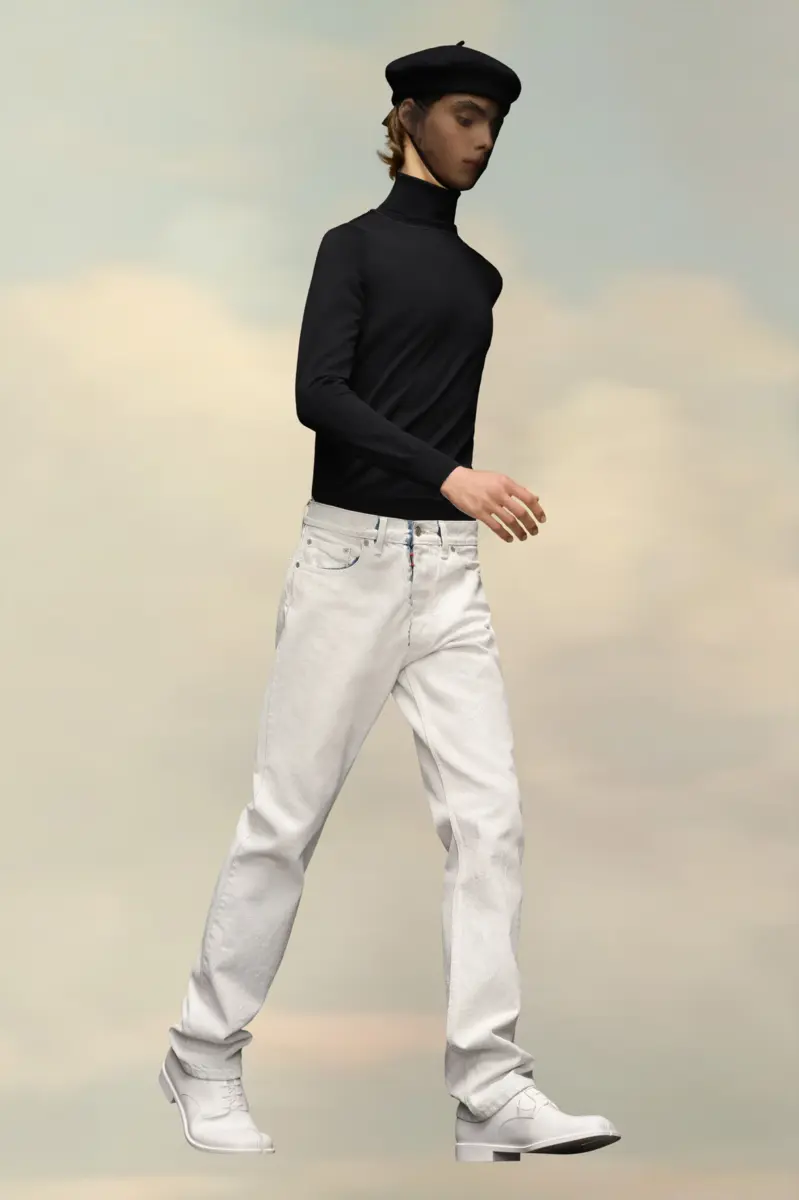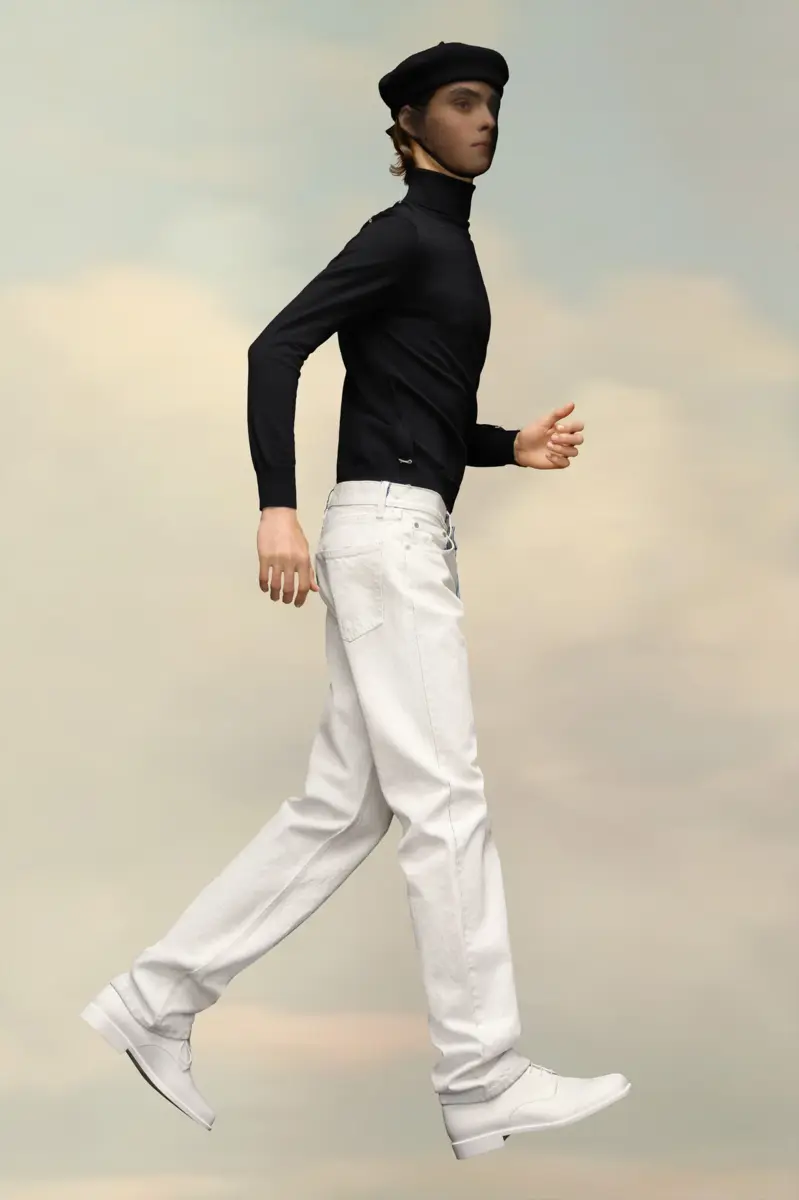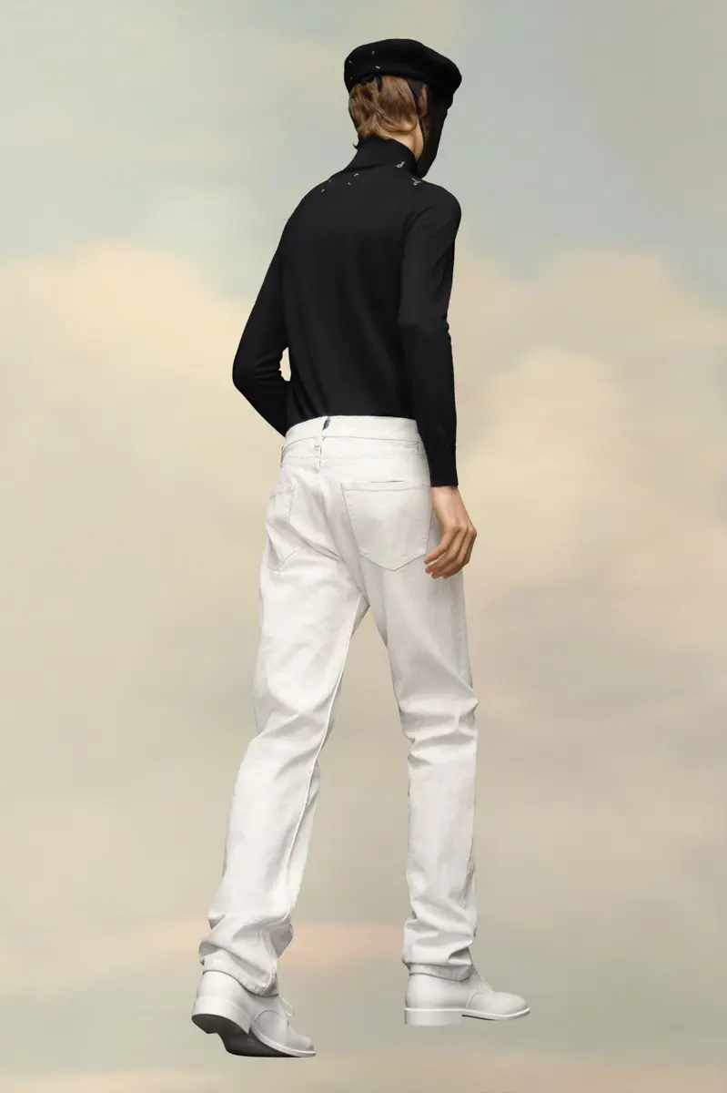 With classic five-pocket styling, these straight-leg jeans feature the four stitches at the back, showing the hand of the Maison: the opposite of a label.