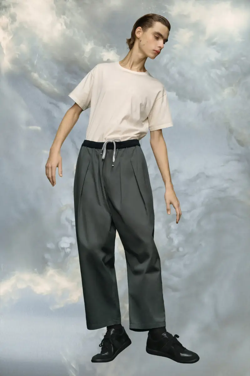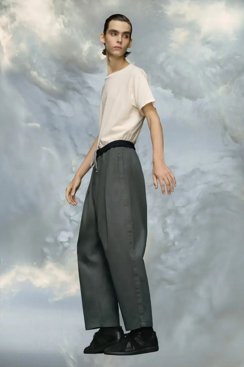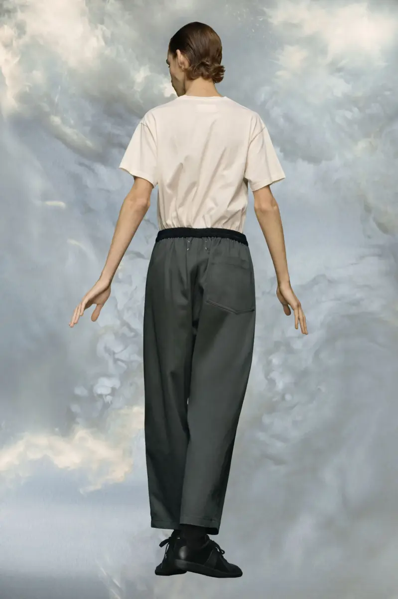 In lightweight cotton, the trousers feature an elasticated waist and relaxed, baggy cut. Maison Margiela’s signature Four stitches appear at the back; the opposite of a label.