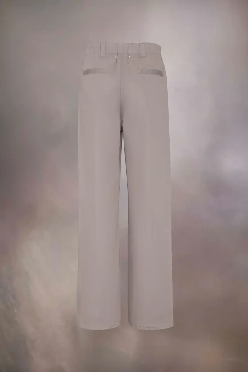 The cotton gabardine trousers feature a wide-leg silhouetteFor a relaxed take. The front is complete with pleats and the back of the waist is elasticated. They are finished with belt loops and the Margiela hook closure. Maison Margiela’s signature, the four stitches, appear at the back; the opposite of a label.