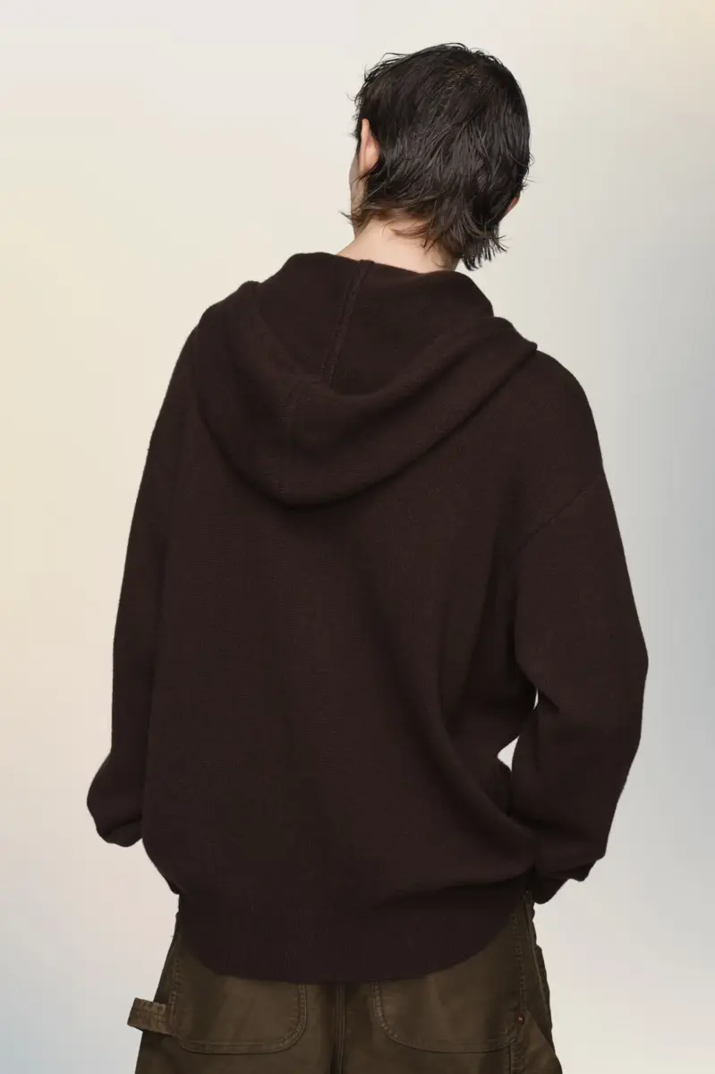 Knitted zip-up hooded sweatshirt in soft cashmere