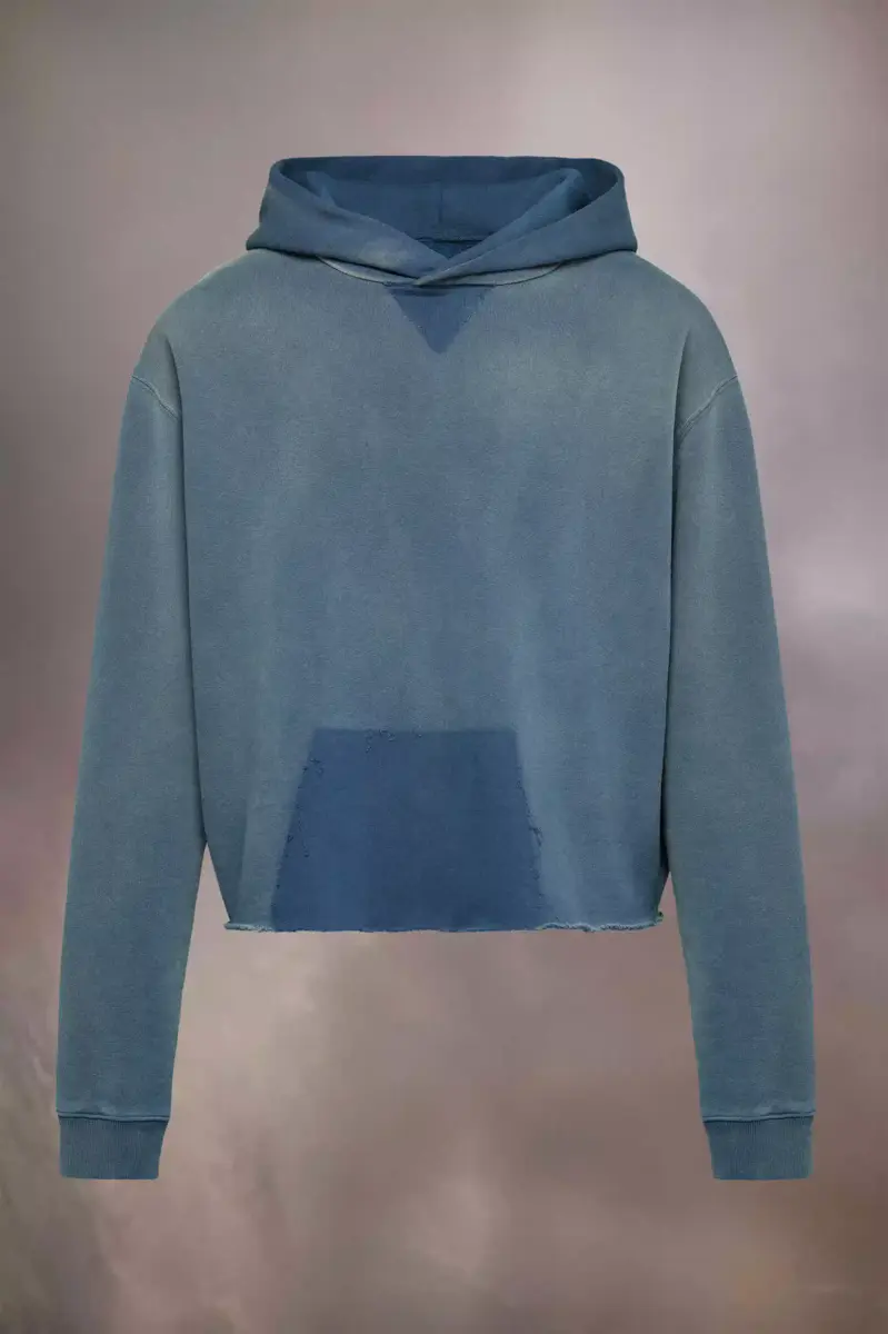 With a Memory of kangaroo pocket, the hooded sweatshirt comes in organic cotton fleece. It features ribbed cuffs and a raw hem with the distressed Margiela logo at the back.