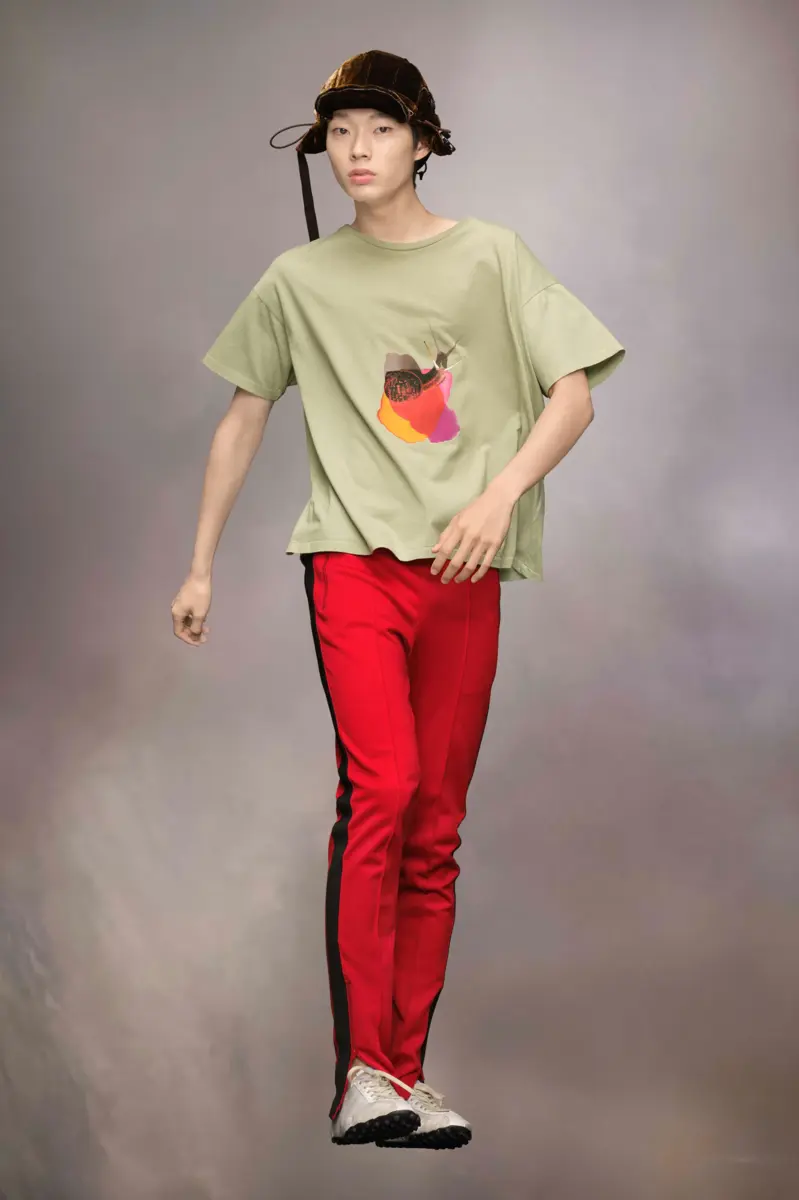 The oversized T-shirt comes in cotton with dropped shoulder seams and a round-neck for a casual take. The front depicts the Maison Margiela snail print with a floral, painterly aspect and dark shadow treatment. Maison Margiela’s signature, the four stitches, appear at the back; the opposite of a label.
