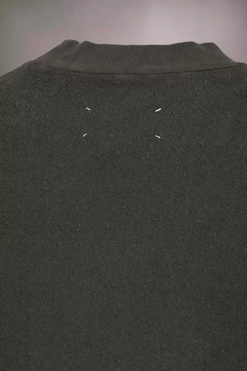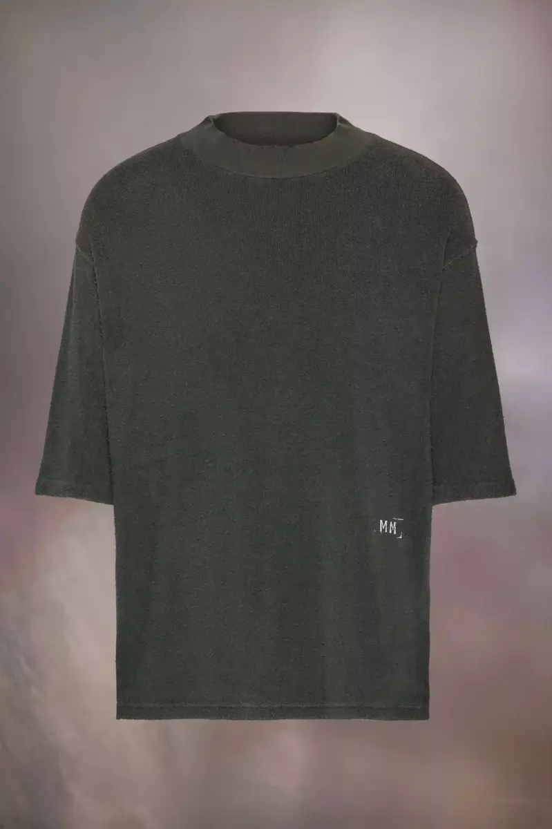 Made in cotton with a distressed finish, the oversized T-shirt has a crew-neck and features the stamped MM logo to the side. The neckline is frayed to further the lived-in look. Maison Margiela’s signature, the four stitches, appear at the back; the opposite of a label.