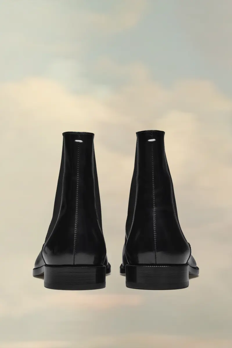 Crafted in brushed leather, these Chelsea boots have elasticated sides and the iconic stitch at the back. They feature the Tabi split-toe, inspired by the traditional 15th century Japanese sock bearing the same name – launched for the Maison’s debut collection in 1989. It captures the avant-garde and insubordinate spirit of the Maison and exists as a heritage classic, continually explored through each collection.