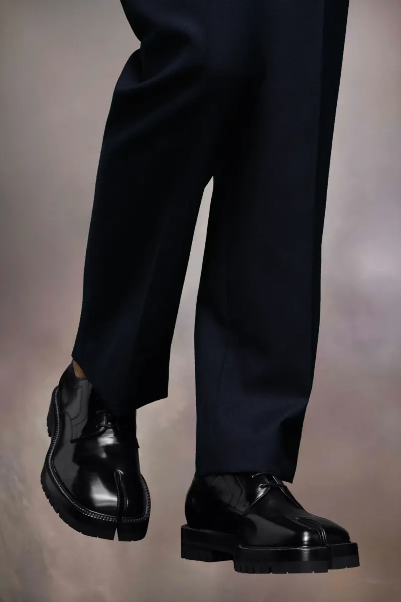 In brushed calfskin, the lace-up shoes feature a chunky cleated sole and the Tabi split-toe, inspired by the traditional 15th century Japanese sock bearing the same name – launched for the Maison’s debut collection in 1989. It captures the avant-garde and insubordinate spirit of the Maison and exists as a heritage classic, continually explored through each collection.