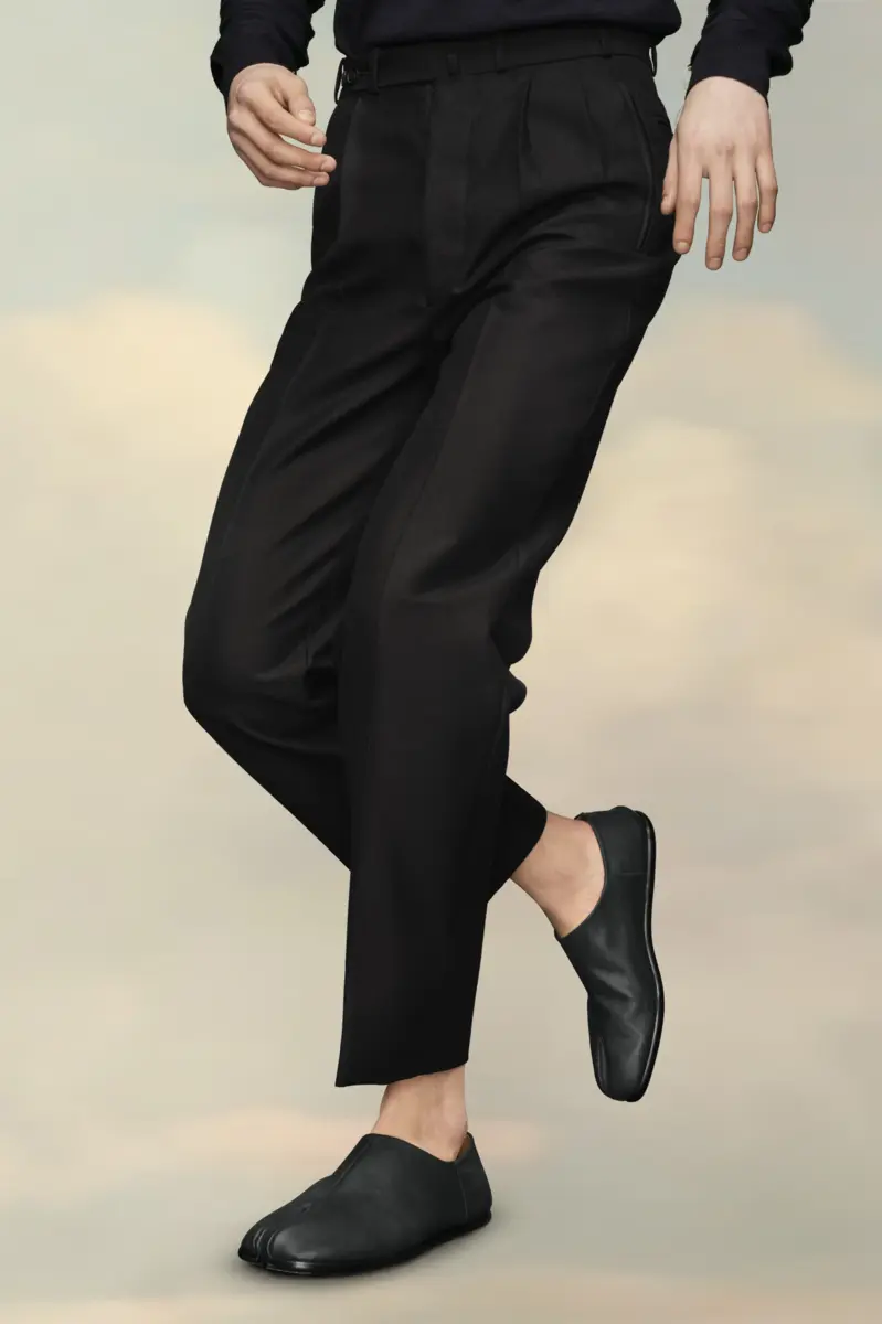 Crafted from soft nappa leather, the babouche shoes feature the Tabi split-toe, inspired by the traditional 15th century Japanese sock bearing the same name – launched for the Maison’s debut collection in 1989. It captures the avant-garde and insubordinate spirit of the Maison and exists as a heritage classic, continually explored through each collection.