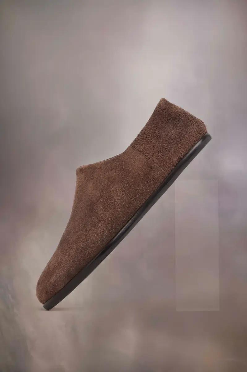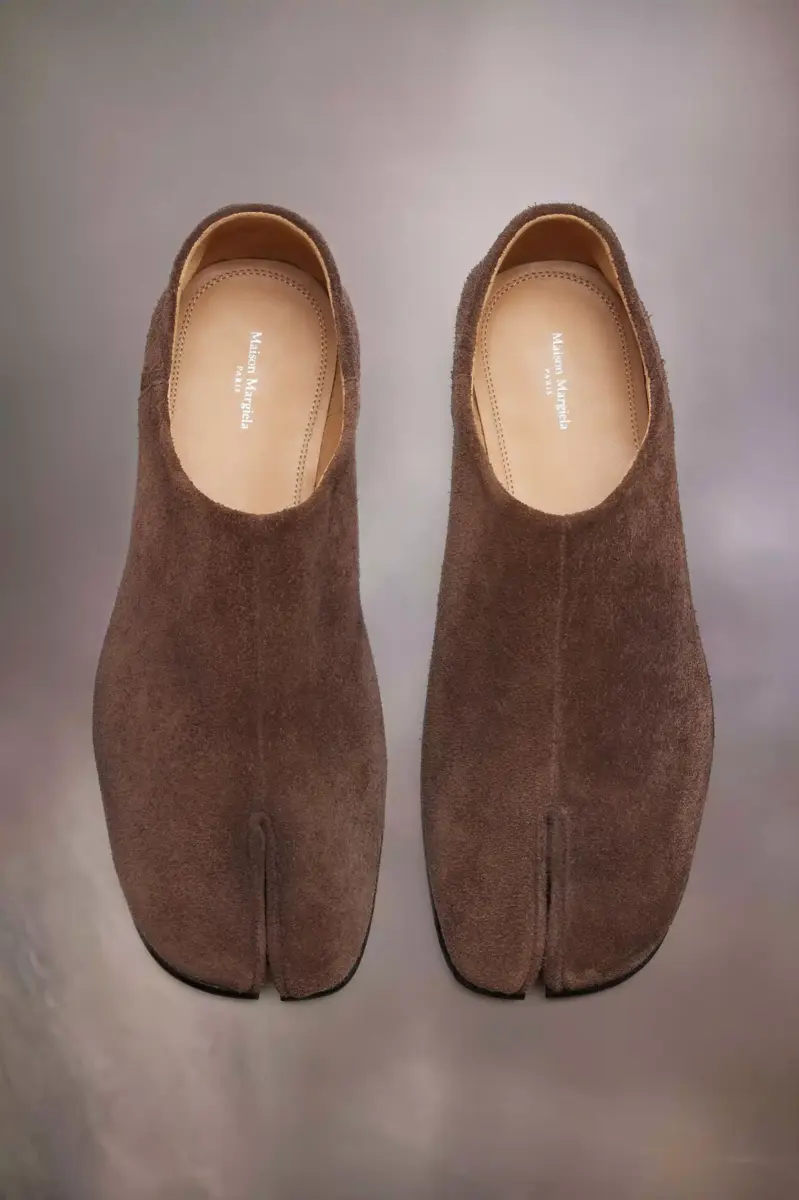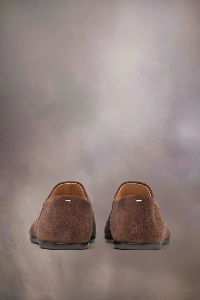 Crafted from suede, the babouche shoes feature the Tabi split-toe. Launched for the Maison’s debut collection in 1989, inspired by the traditional 15th century Japanese sock bearing the same name, it captures the avant-garde and insubordinate spirit of the Maison. A heritage classic, continually explored through each collection. Maison Margiela’s signature white stitch appears at the back.