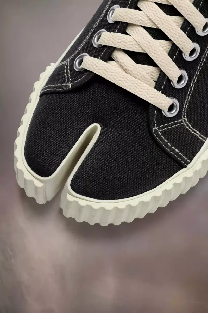 In canvas, the sneakers have a ribbed front sole, numeric logo at the back, and feature the Tabi split-toe, inspired by the traditional 15th century Japanese sock bearing the same name – launched for the Maison’s debut collection in 1989. It captures the avant-garde and insubordinate spirit of the Maison and exists as a heritage classic, continually explored through each collection.