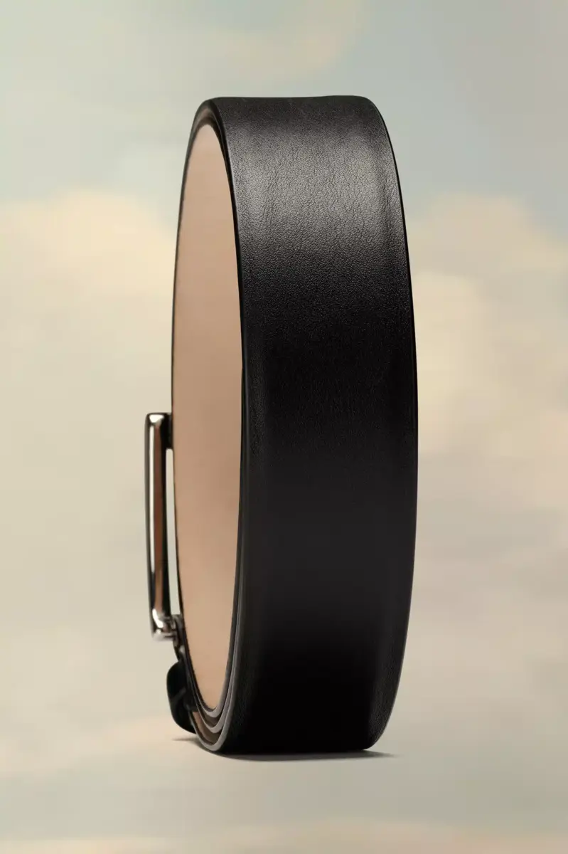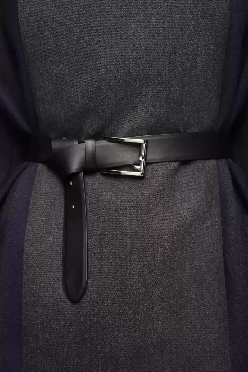 Crafted from leather, this adjustable belt features a classic rectangular buckle.