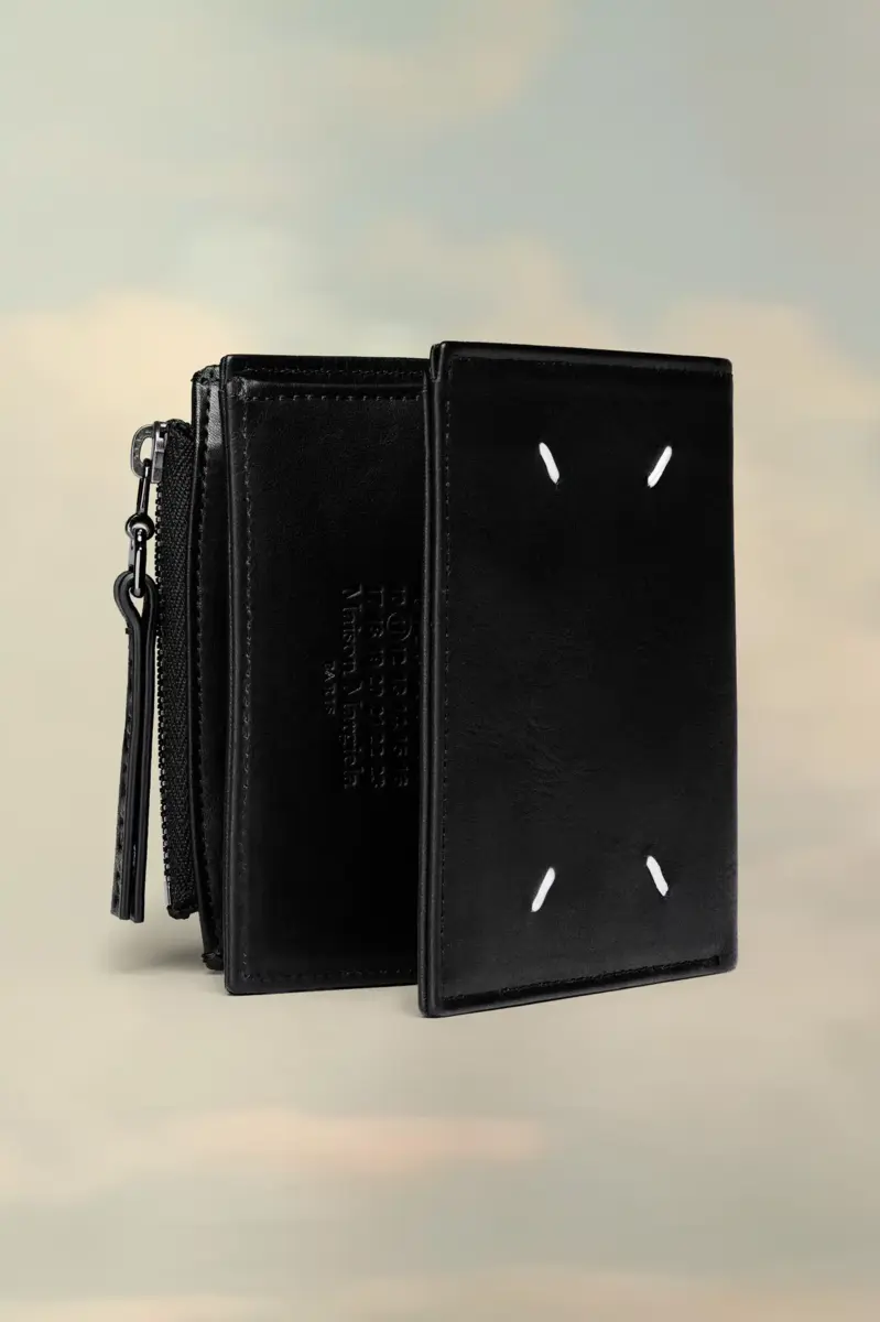 Crafted from leather, this folded wallet in incorporates an outer zipped coin purse with full inner compartments. The front is kept plain with the Maison’s iconic four white stitches marked on the back.