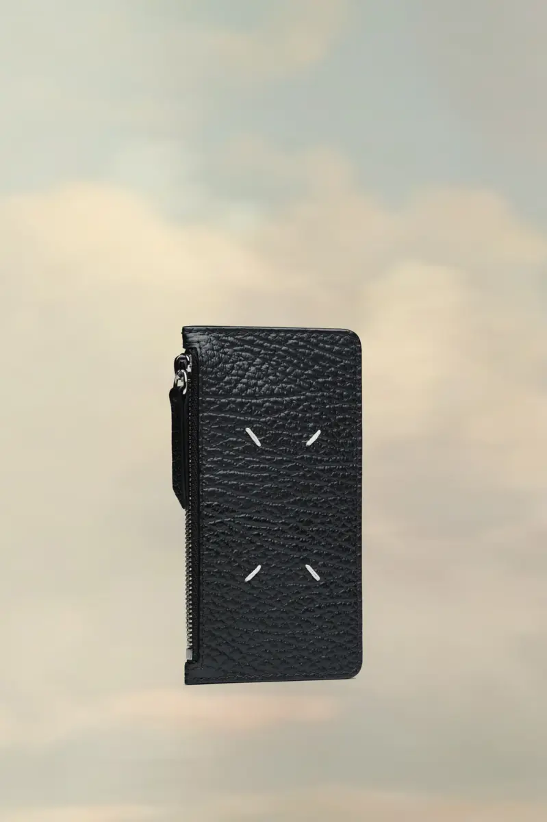 Crafted from embossed grainy leather, the cardholder wallet has a zipped section for coins and five card holders. The numeric logo appears inside. Maison Margiela’s signature, the four stitches, appear at the back; the opposite of a label.