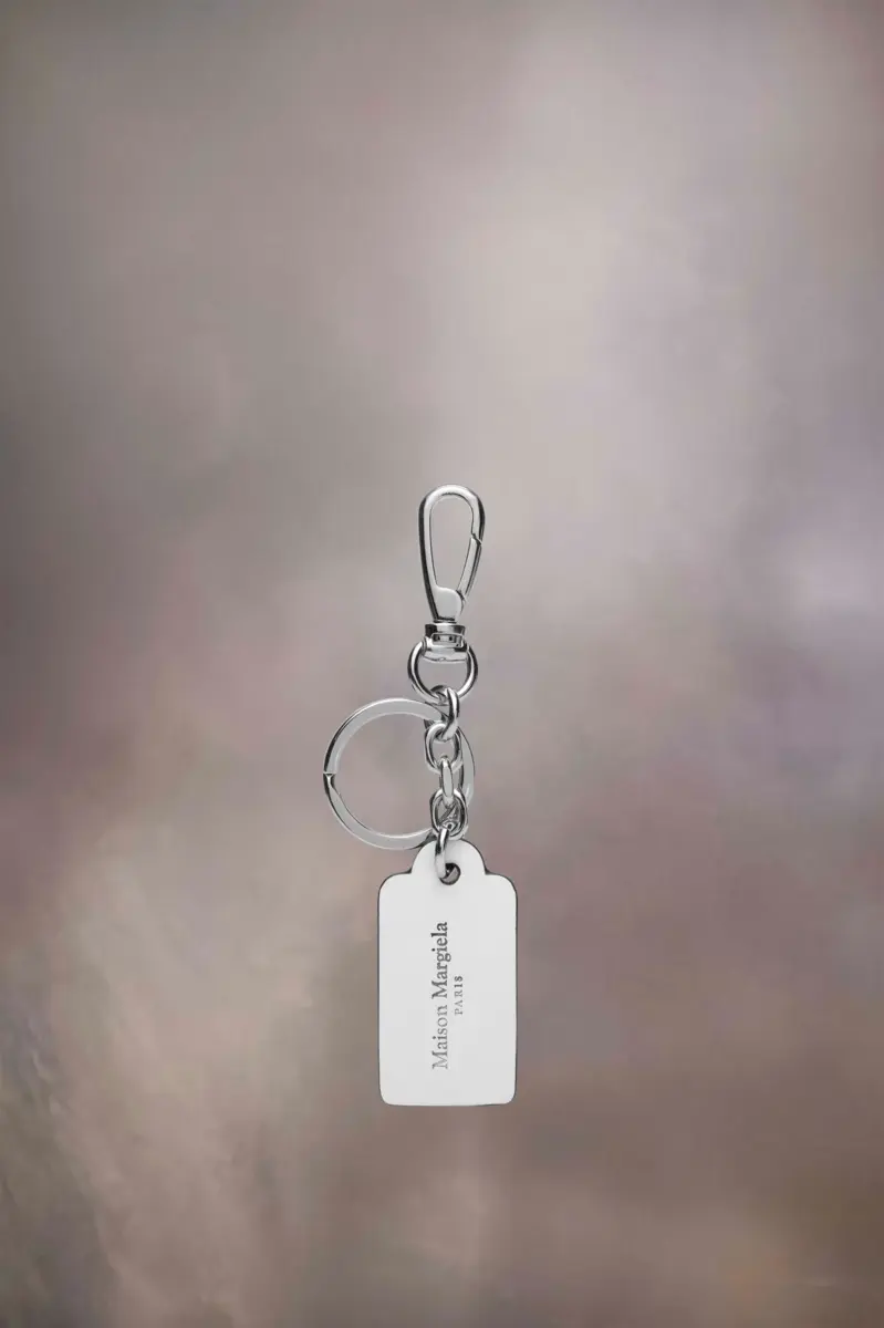 The small keyring with a hook is crafted from calf leather. The logo appears on one side and Maison Margiela’s signature, the Four stitches, appear on the other; the opposite of a label.