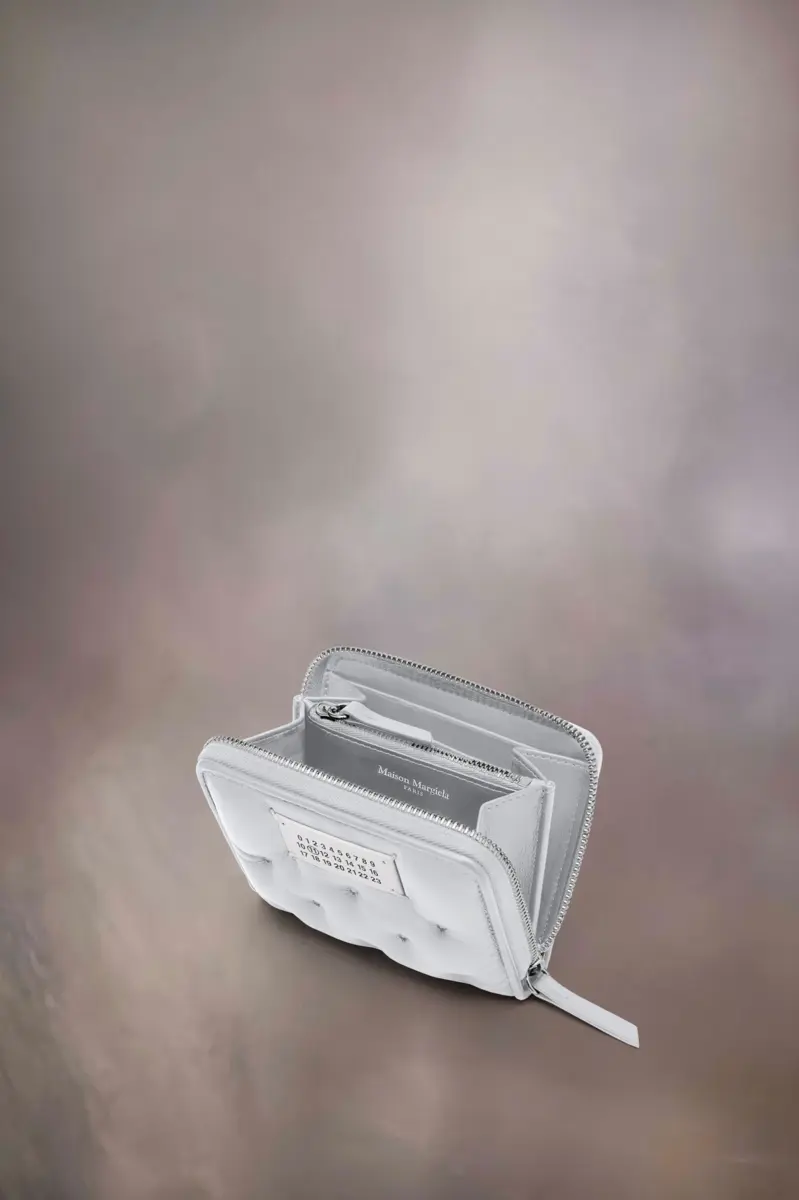The Glam Slam small wallet is crafted from specially embroidered nappa leather, with a zip-around design and inner zipped coin holder. The Glam Slam debuted in the SS18 show and has a quilted design which mimics matelassé – the style of hand-stitched quilts created in Marseilles, France. The concept reflects the Maison’s notion of unconscious glamour and evokes its association to comfort, following the study into dressing and travelling rituals worldwide. It is adorned with the numeric logo label at the front.