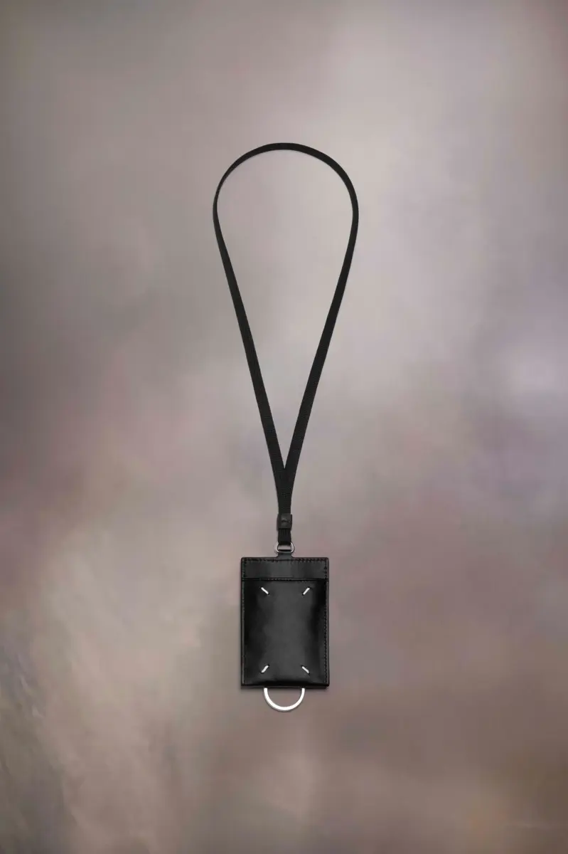 In calf leather, the cardholder features three card slots with a keyring. It comes on a lace and is accented with the logo on one side. Maison Margiela’s signature, the Four stitches, appear on the other side; the opposite of a label.