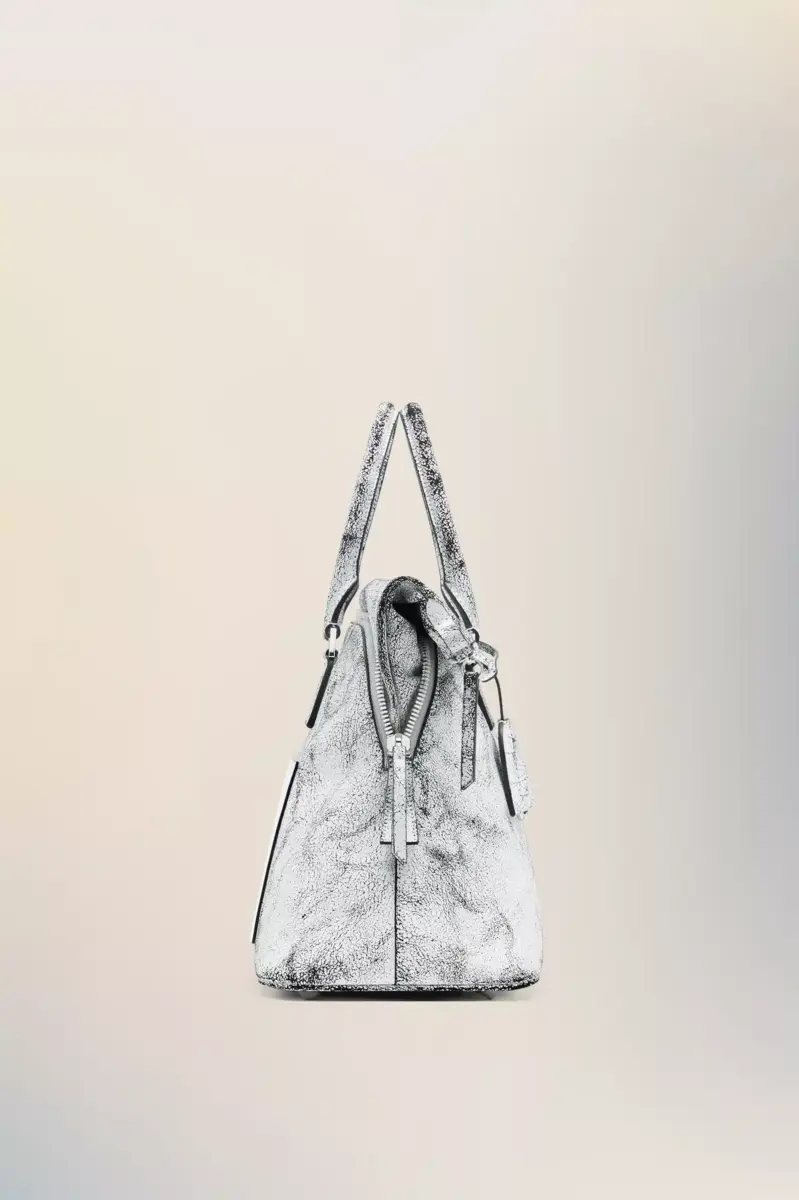 Top handle bag in crackled-effect calf leather