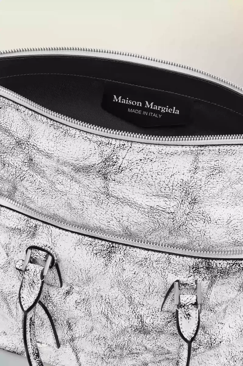 This 5AC Loved to Death medium is crafted in leather with a crackled treatment – a layered finish emblematic of the Maison. A matte coating is applied by hand over soft calf leather, designed to flake with time and reveal the beauty of wear and imperfection. The iconic 5AC line takes its name from the French word ‘sac’ (bag). It explores the Maison’s Anonymity of the Lining concept. Accented with the Maison’s numeric artwork and four stitches – the opposite of a label.