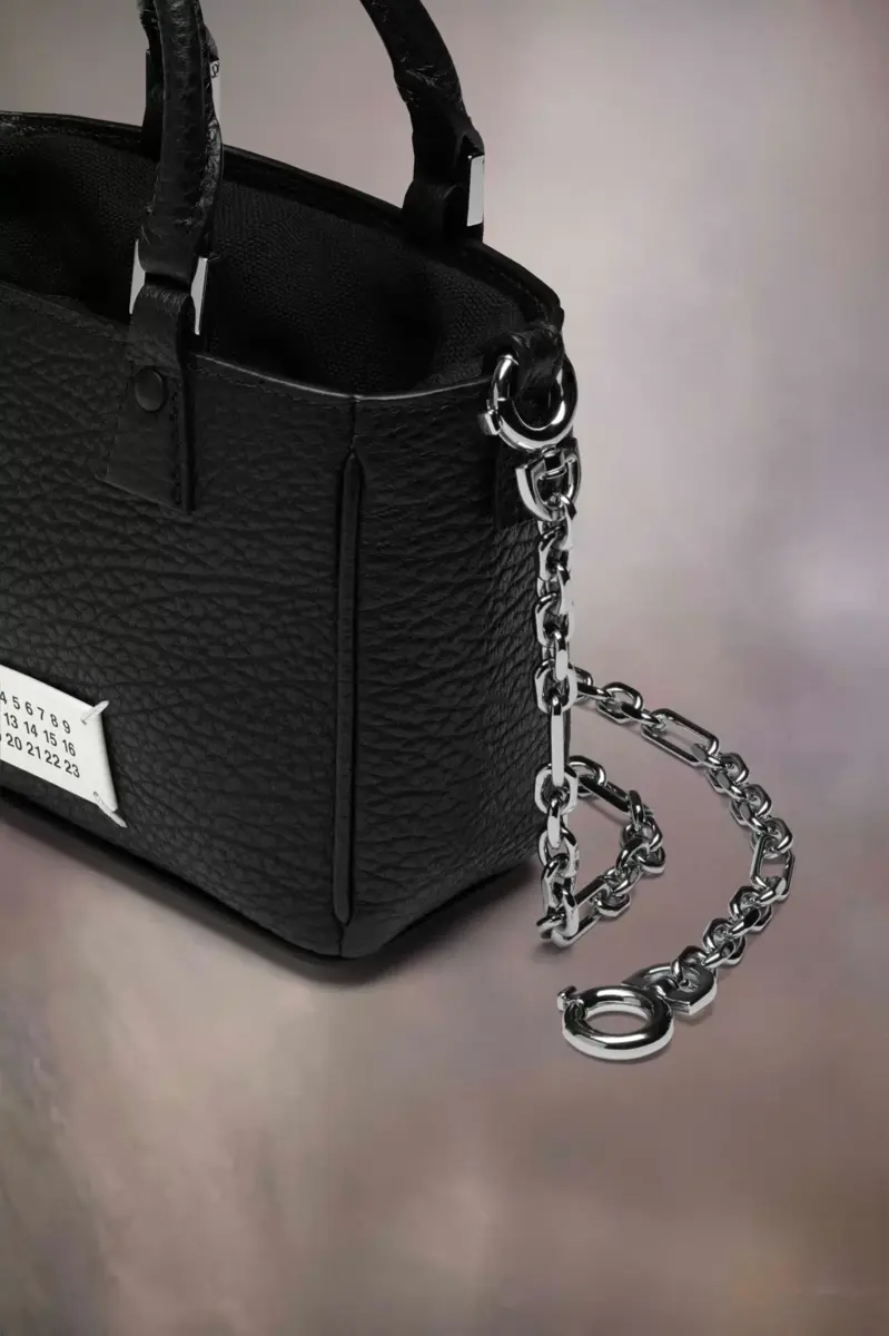 The 5AC tote horizontal, crafted from grainy leather, is accented with the logo label. The iconic 5AC line takes its name from the French word ‘sac’ (bag). It explores the Maison’s Anonymity of the lining concept. The bag’s metal rivets are covered in leather by hand, with the metal visible only where needed, for a clean aspect. Artisanal details include the bag’s exposed edges hand-painted in tone with the leather.