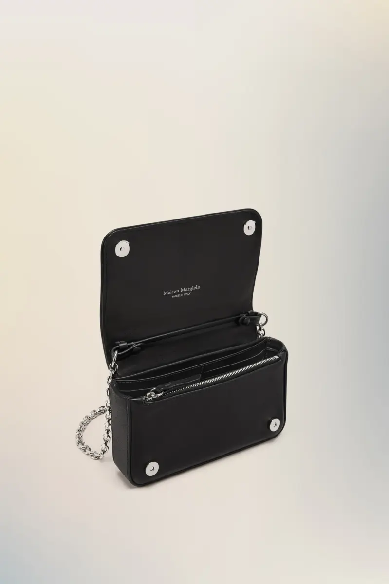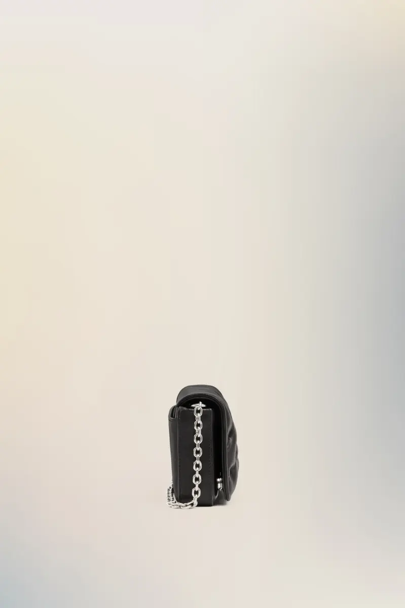 A compact evolution of the Glam Slam, this wallet bag channels the Maison’s idea of unconscious glamour through a quilted, pillow-soft exterior. Its structured form opens to multiple compartments, secured by magnetic fastenings and a polished zip. The chain strap and numeric logo tag add contrast — elegant, industrial, and unexpected.
