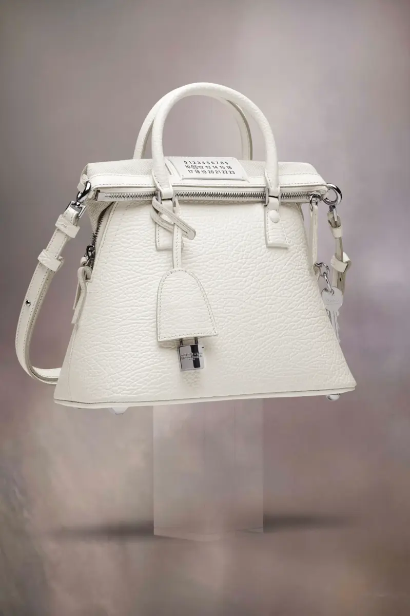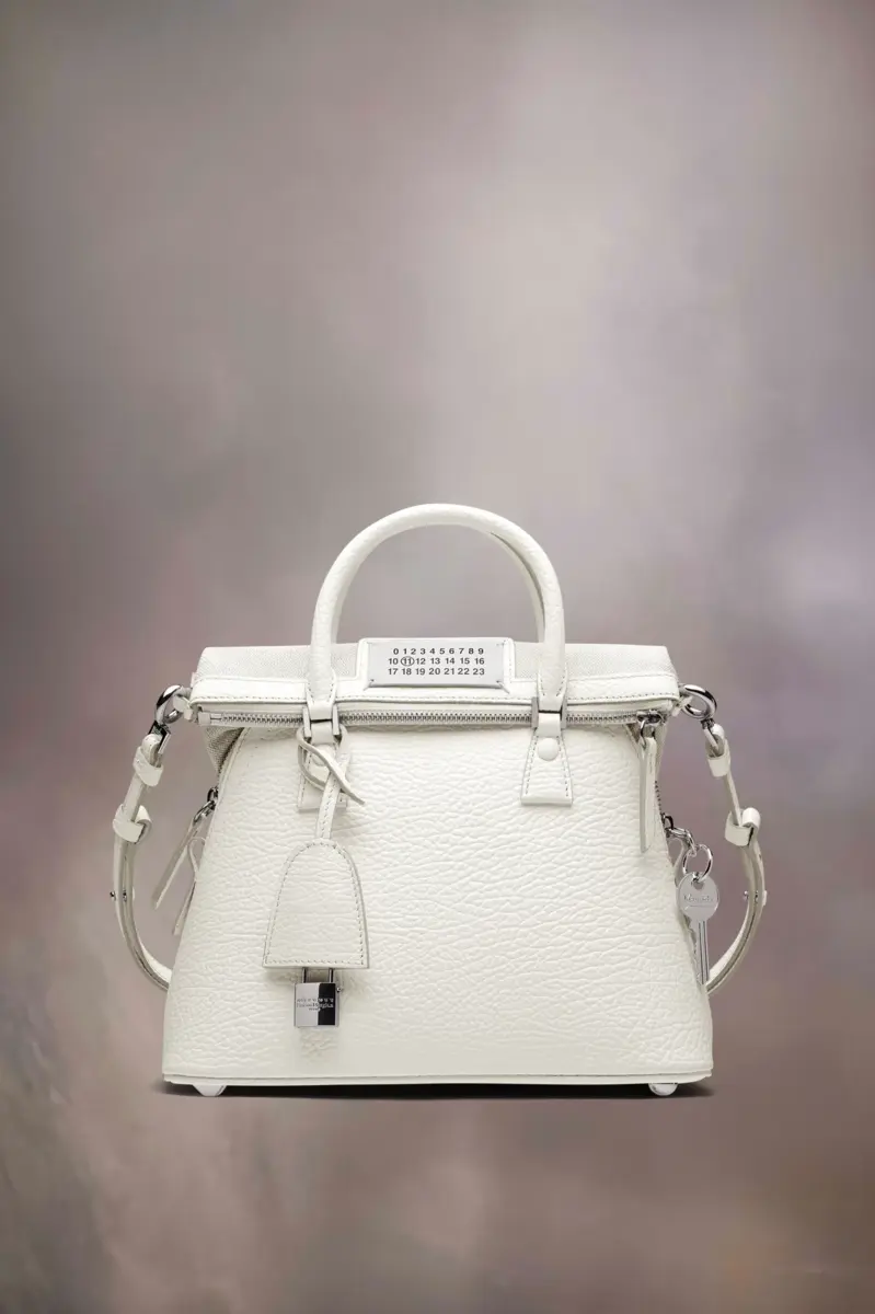 The 5AC classique mini, crafted from grainy leather, features top handles and a tonal shoulder strap. It is accented with the logo label at the front. The iconic 5AC line takes its name from the French word ‘sac’ (bag). It explores the Maison’s Anonymity of the lining concept. The bag’s metal rivets are covered in leather by hand, with the metal visible only where needed, for a clean aspect. Artisanal details include the bag’s exposed edges hand-painted in tone with the leather.