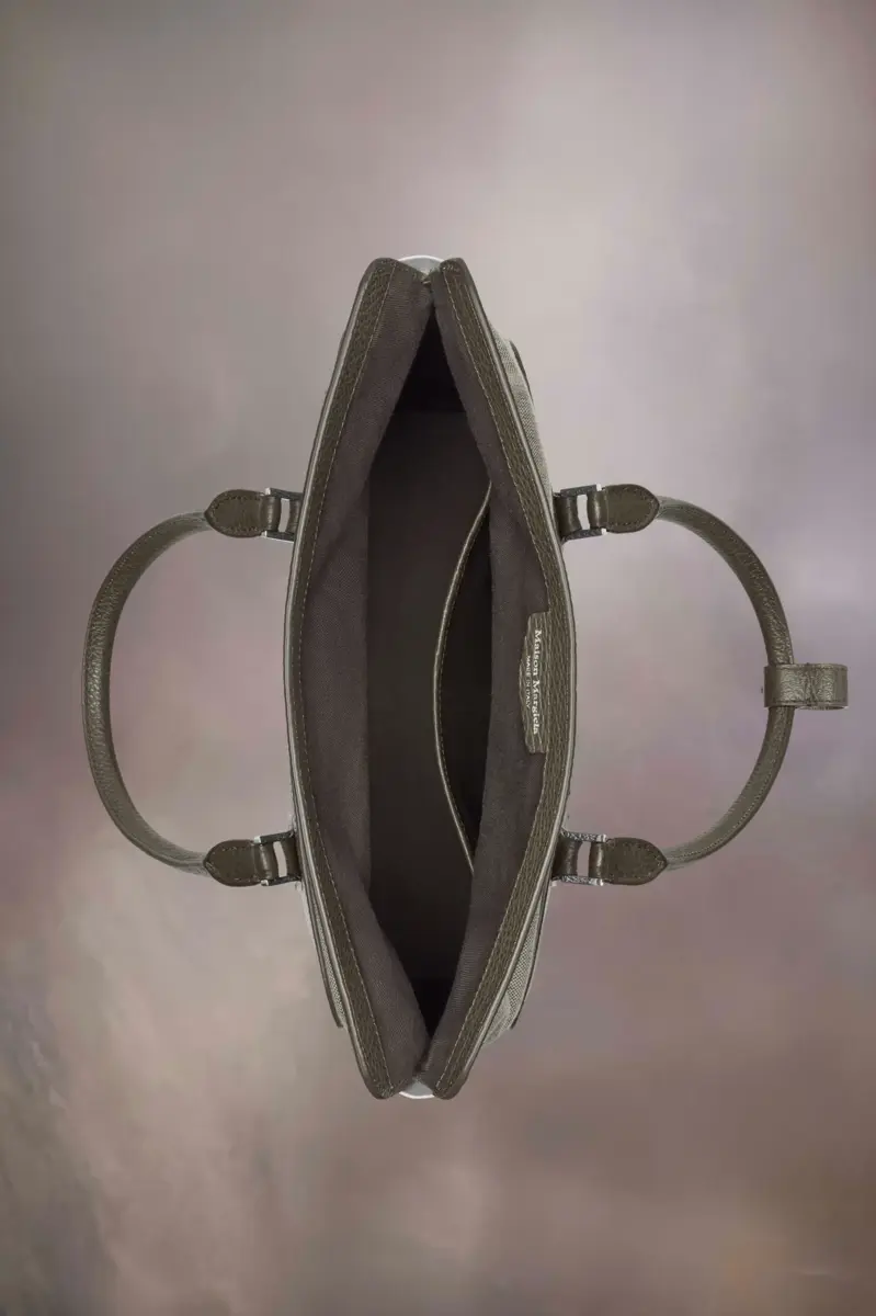 The 5AC backpack, crafted from grainy leather, features top handles and a fold-over design. It is accented with the logo label at the front. The iconic 5AC line takes its name from the French word ‘sac’ (bag). It explores the Maison’s Anonymity of the lining concept. The bag’s metal rivets are covered in leather by hand, with the metal visible only where needed, for a clean aspect. Artisanal details include the bag’s exposed edges hand-painted in tone with the leather. The straps can be removed for multi-wear.