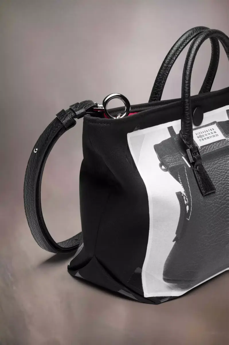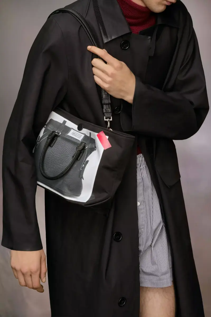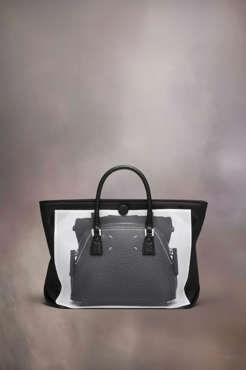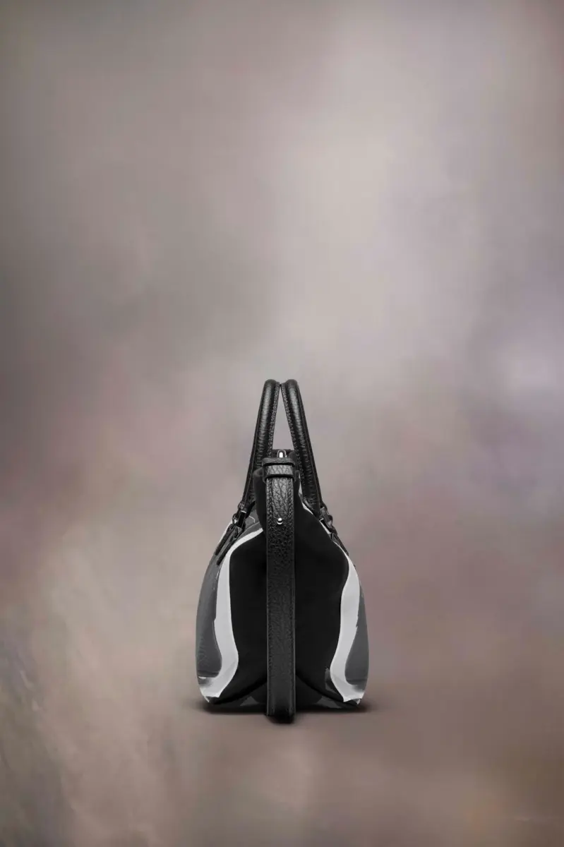 The trompe l’œil 5AC micro comes in printed mackintosh and leather with a trompe l’oeil 5AC design – accented with the logo label on the front. The iconic 5AC line takes its name from the French word ‘sac’ (bag). It explores the Maison’s Anonymity of the lining concept. The bag’s metal rivets are covered in leather by hand, with the metal visible only where needed, for a clean aspect. Artisanal details include the bag’s exposed edges hand-painted in tone with the leather.