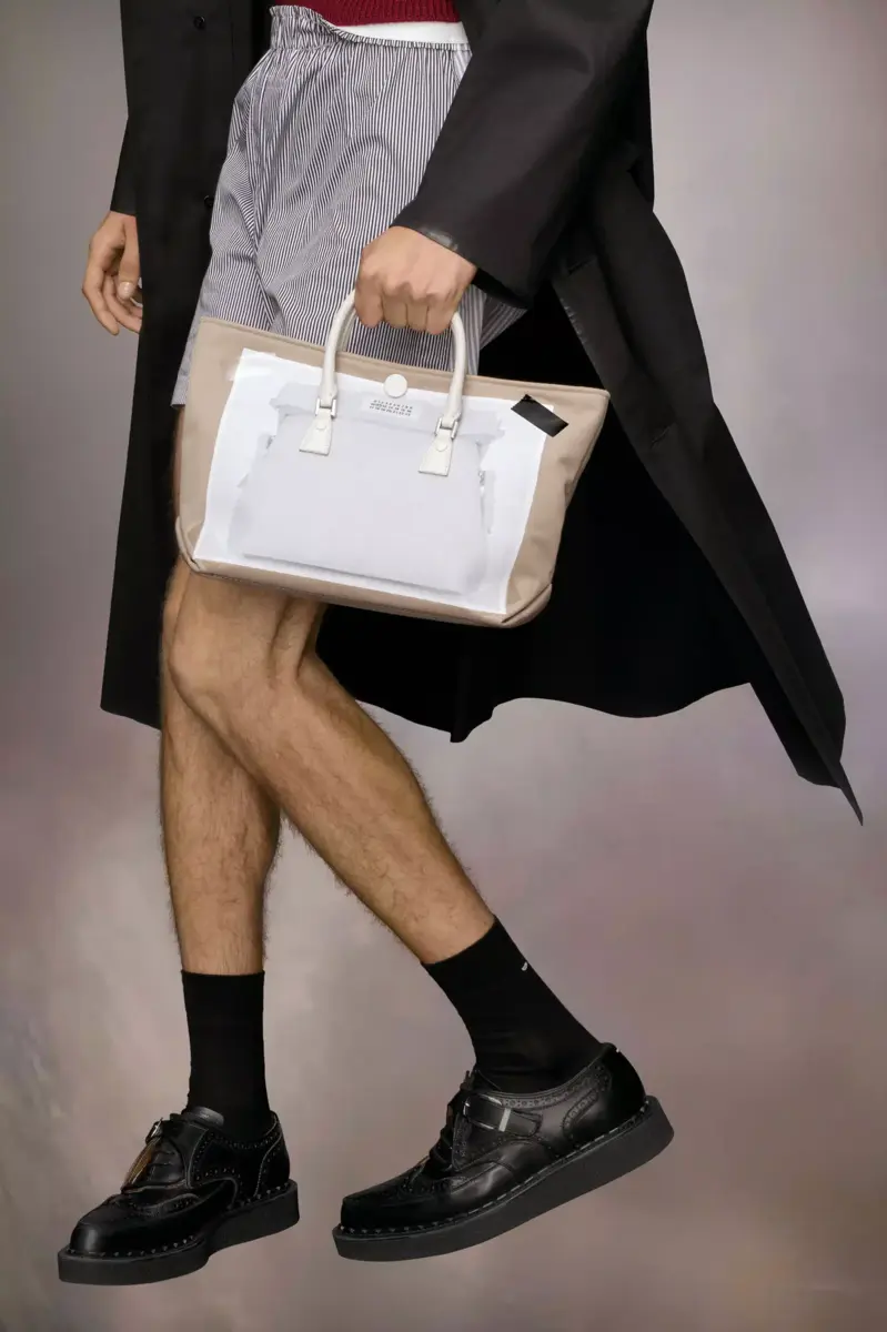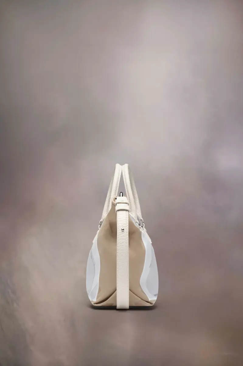 The trompe l’œil 5AC micro comes in printed mackintosh and leather with a trompe l’oeil 5AC design – accented with the logo label on the front. The iconic 5AC line takes its name from the French word ‘sac’ (bag). It explores the Maison’s Anonymity of the lining concept. The bag’s metal rivets are covered in leather by hand, with the metal visible only where needed, for a clean aspect. Artisanal details include the bag’s exposed edges hand-painted in tone with the leather.