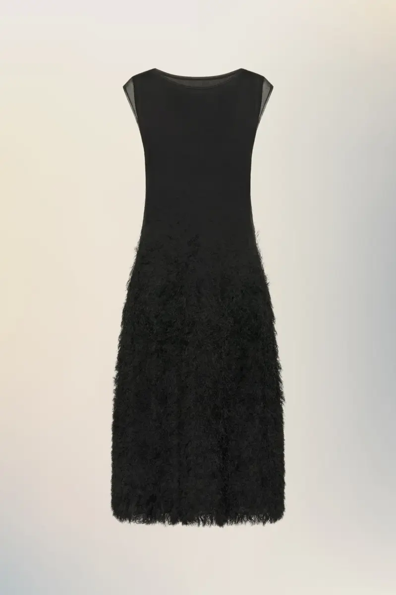 Mid-length sleeveless knit dress in sheer silk