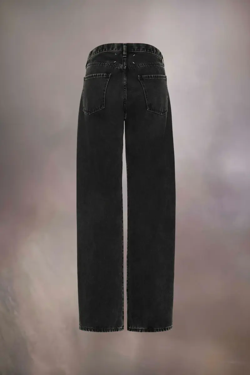 The relaxed-fit straight jeans come in a distressed finish for a worn-in look, and feature large baggy pockets at the front for a Décortiqué effect. They are finished with a button fastening and belt loops. Maison Margiela’s signature, the four stitches, appear at the back; the opposite of a label.