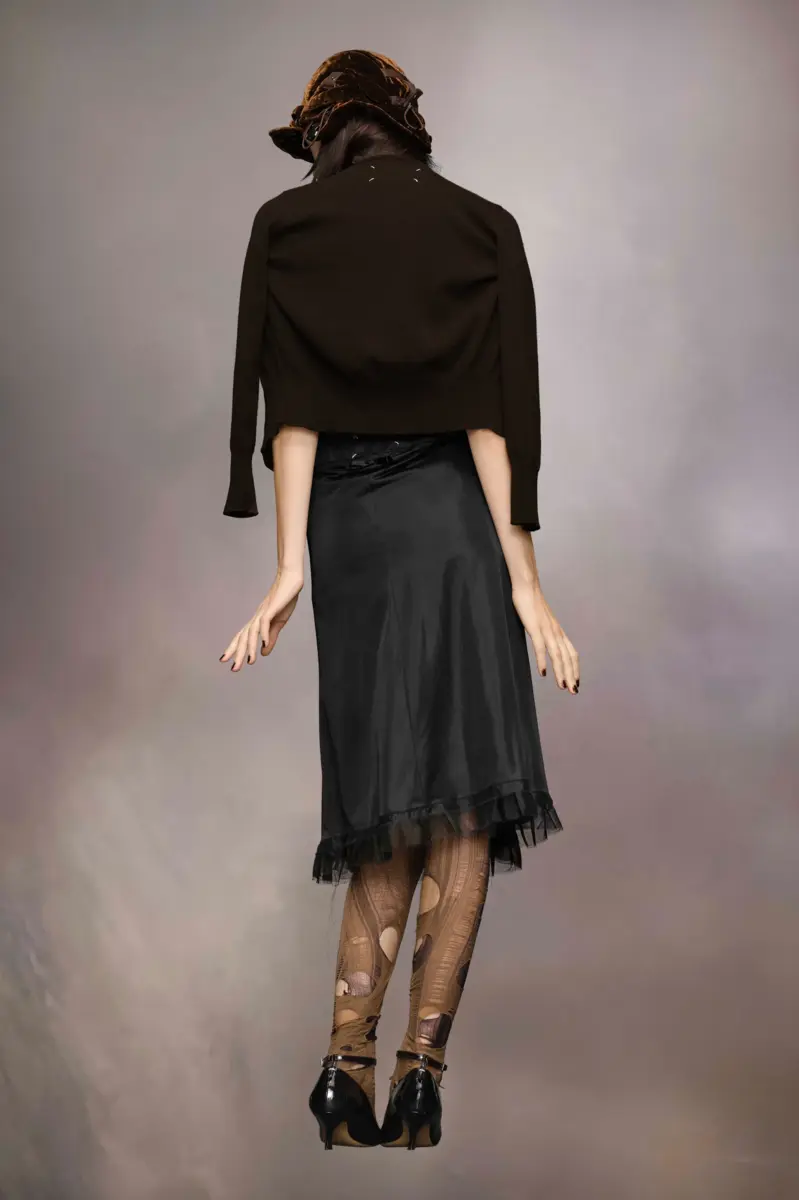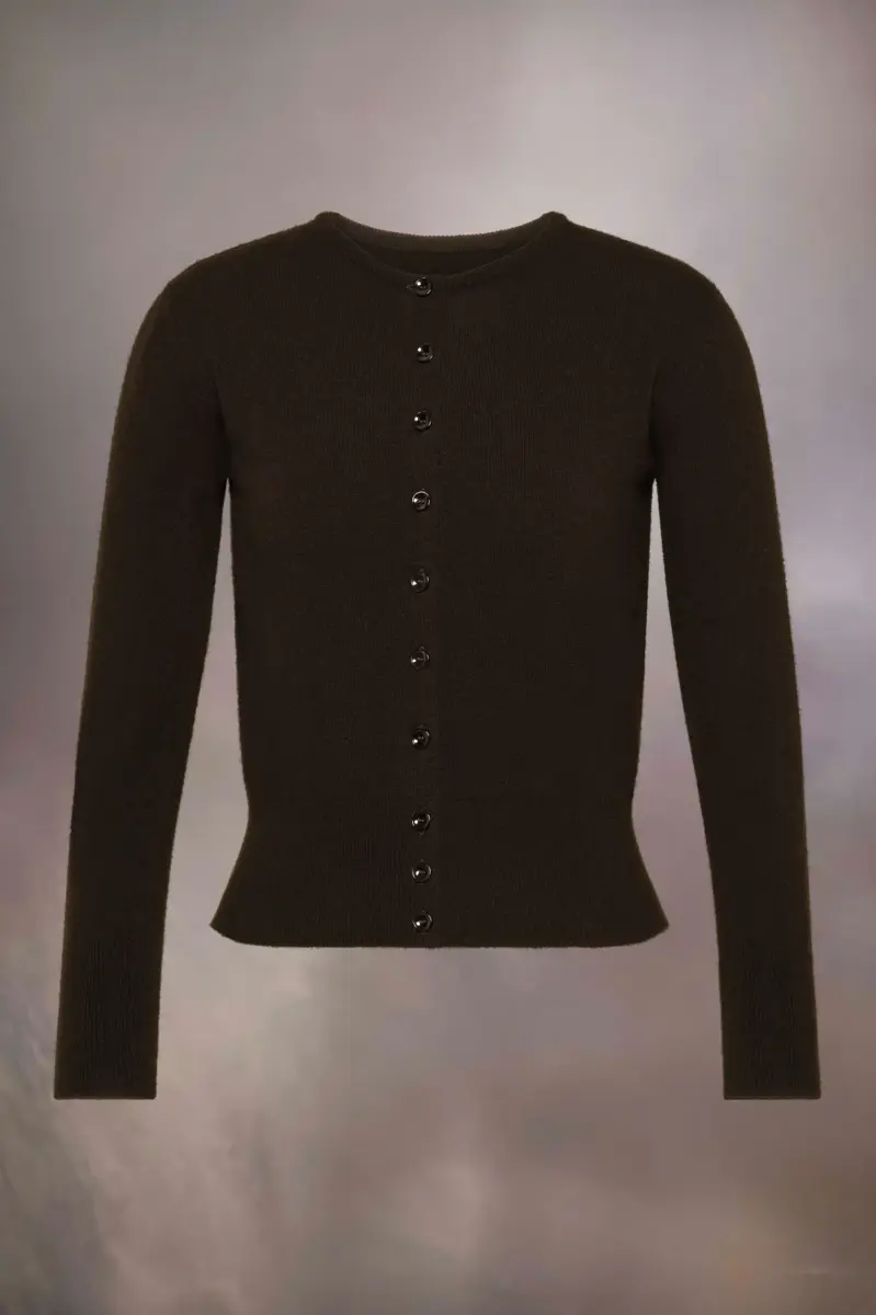 In virgin wool, the minimal knitwear cardigan has a classic crew-neck design with tonal button front. It offers a slightly cropped relaxed fit. Featuring long sleeves with ribbed trims around the neck, cuffs and at the hem for further texture. Maison Margiela’s signature, the four stitches, appear at the back; the opposite of a label.