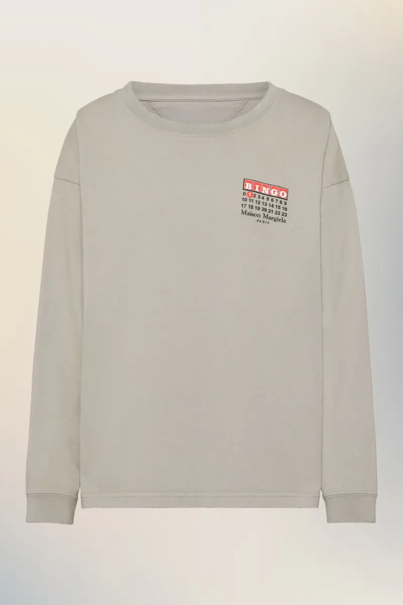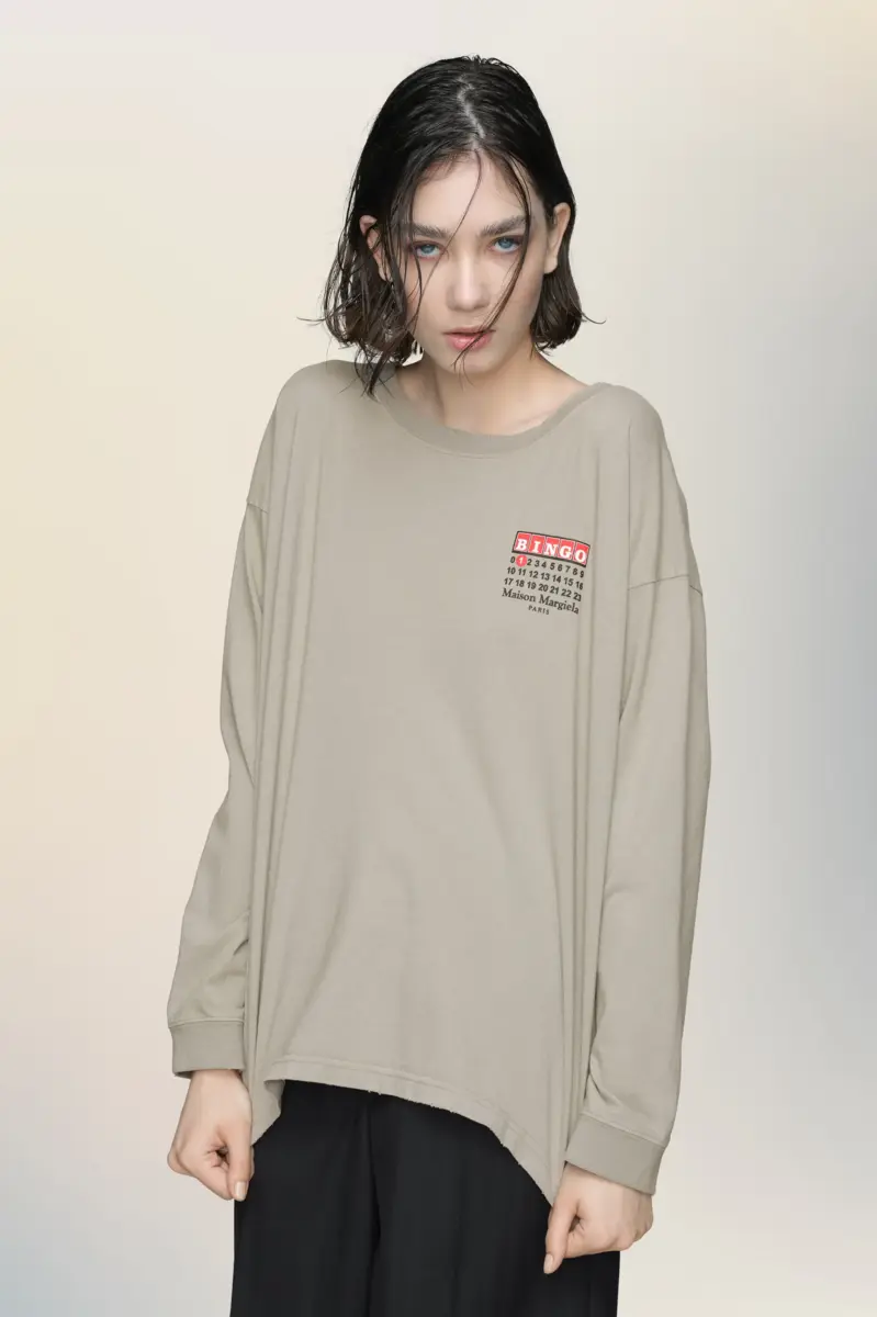 This long-sleeve T-shirt plays on a graphic reinterpretation of the bingo card. Maison Margiela reframes familiar visual codes with subtle irony, rendered here in a clean, classic cut. The four stitches appear at the back; the opposite of a label.