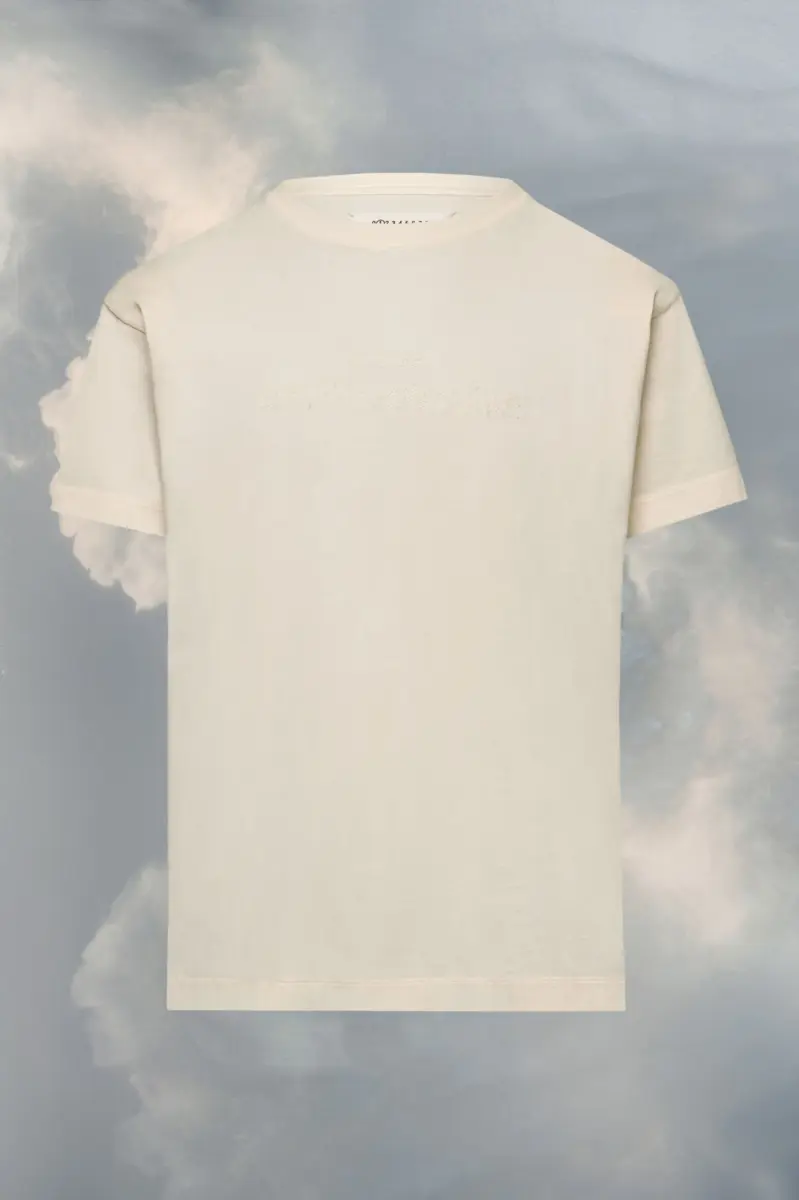 The cotton jersey T-shirt features the new reverse logo, with reverse applicated stitch to give the impression it has been sewn and then unstitched. Maison Margiela’s signature, the Four stitches, appear at the back; the opposite of a label.