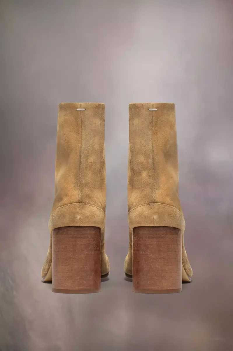 Crafted from suede with a used treatment created by hand, the ankle boots have an 8cm cylindrical heel. The back features a single white stitch showing the hand of Maison Margiela. They feature the Tabi split-toe shape, inspired by the traditional 15th century Japanese sock bearing the same name – launched for the Maison’s debut collection in 1989. It captures the avant-garde and insubordinate spirit of the Maison and exists as a heritage classic, continually explored through each collection.