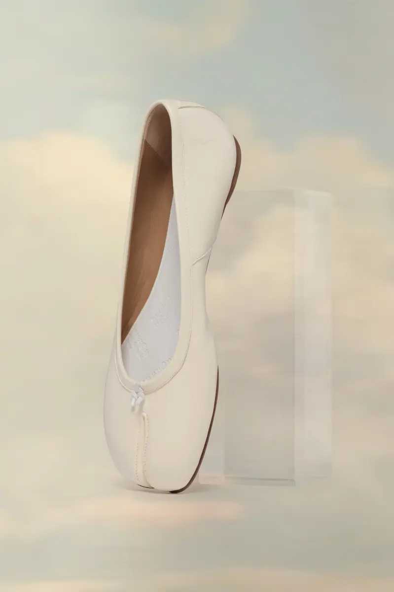 The Tabi ballerina flats in soft nappa leather feature the Tabi split-toe, inspired by the traditional 15th century Japanese sock bearing the same name – launched for the Maison’s debut collection in 1989. It captures the avant-garde and insubordinate spirit of the Maison and exists as a heritage classic, continually explored through each collection.