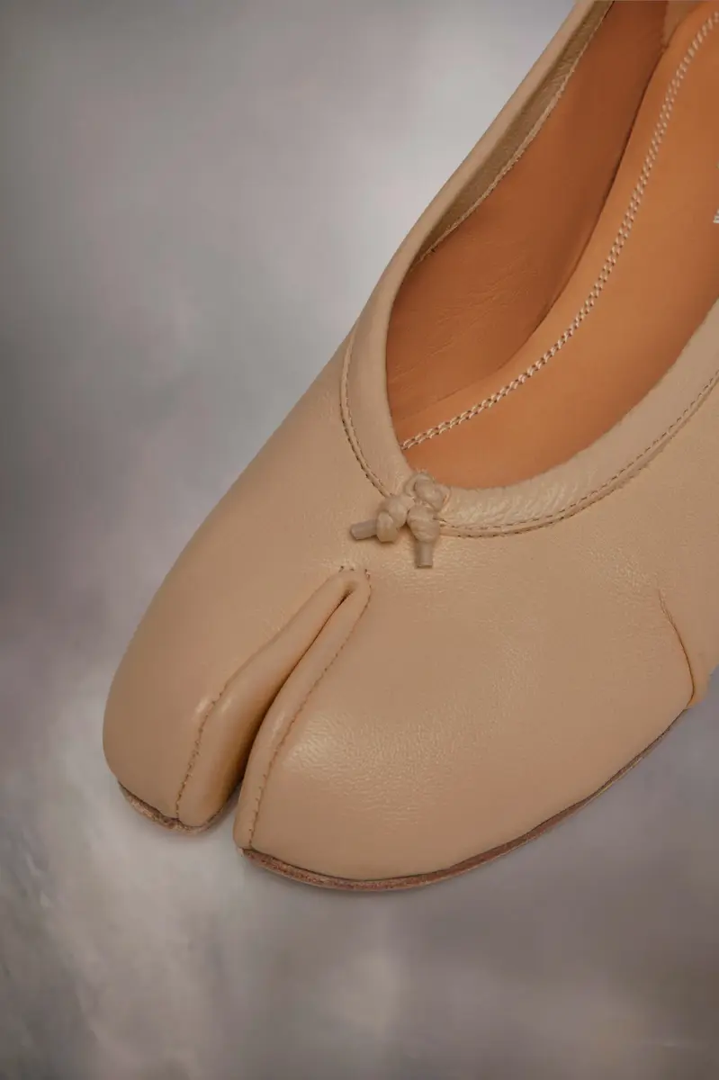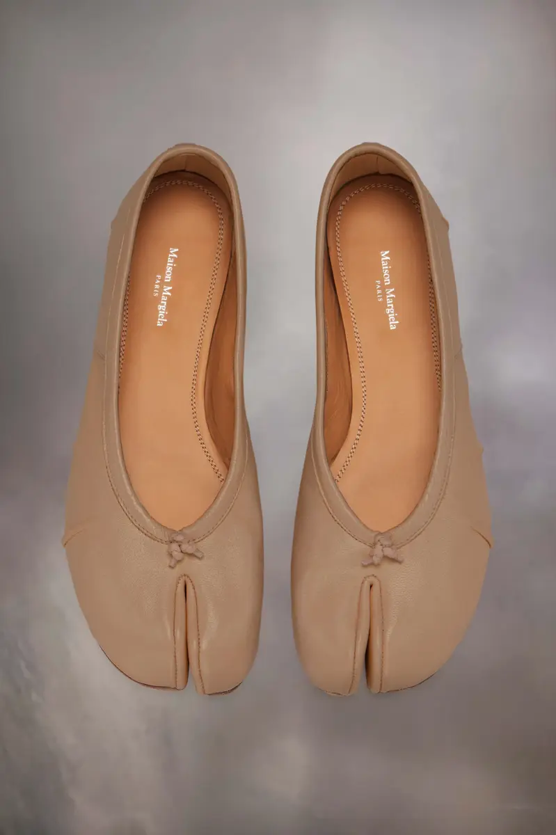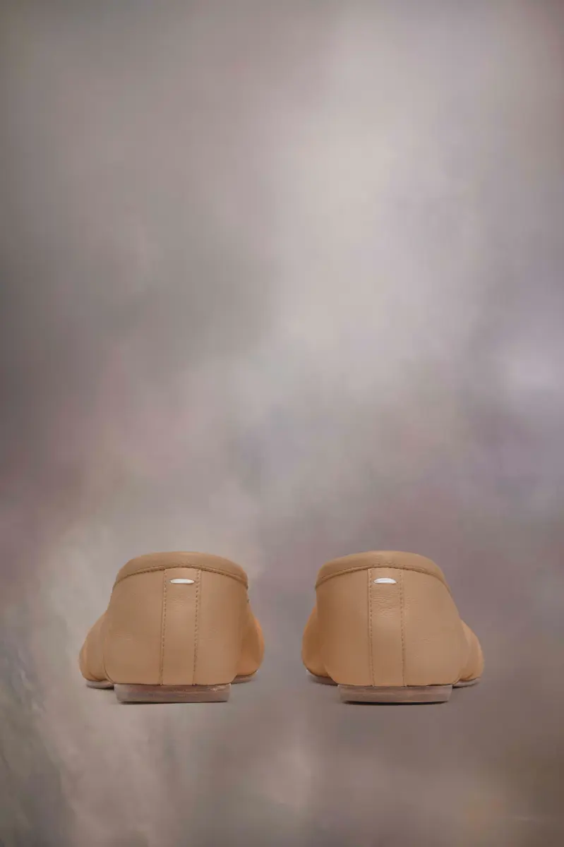 Maison Margiela presents the Tabi new ballerinas, which take their design from ballerina shoes in the house archives. They are crafted in soft nappa leather with a hand crafted used treament applied at the folds, base and seams, manually worked to create an artisanal vintage effect. They feature the Tabi split-toe, inspired by the traditional 15th century Japanese sock bearing the same name – launched for the Maison’s debut collection in 1989. It captures the avant-garde and insubordinate spirit of the Maison and exists as a heritage classic, continually explored through each collection.