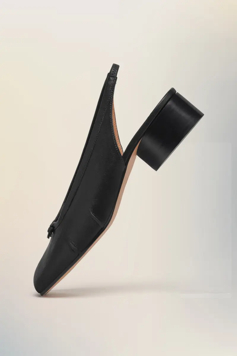 Maison Margiela presents the Tabi new ballerinas, which take their design from ballerina shoes in the house archives. The slingbacks have a 3cm heel and are crafted in soft nappa leather, with a handcrafted used treatment applied at the folds, base and seams, manually worked to create an artisanal vintage effect. They feature the Tabi split-toe, inspired by the traditional 15th century Japanese sock bearing the same name – launched for the Maison’s debut collection in 1989. It captures the avant-garde and insubordinate spirit of the Maison and exists as a heritage classic, continually explored through each collection.