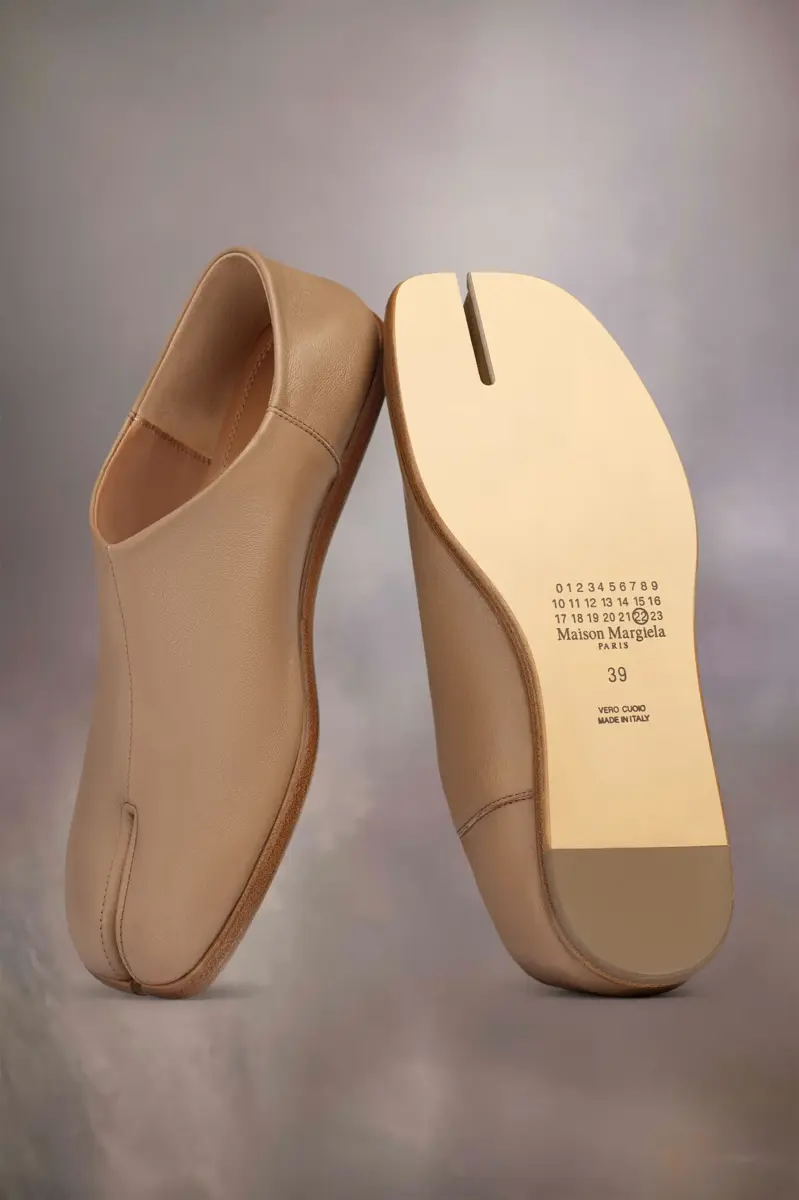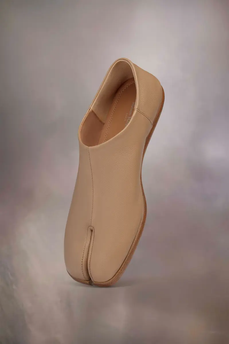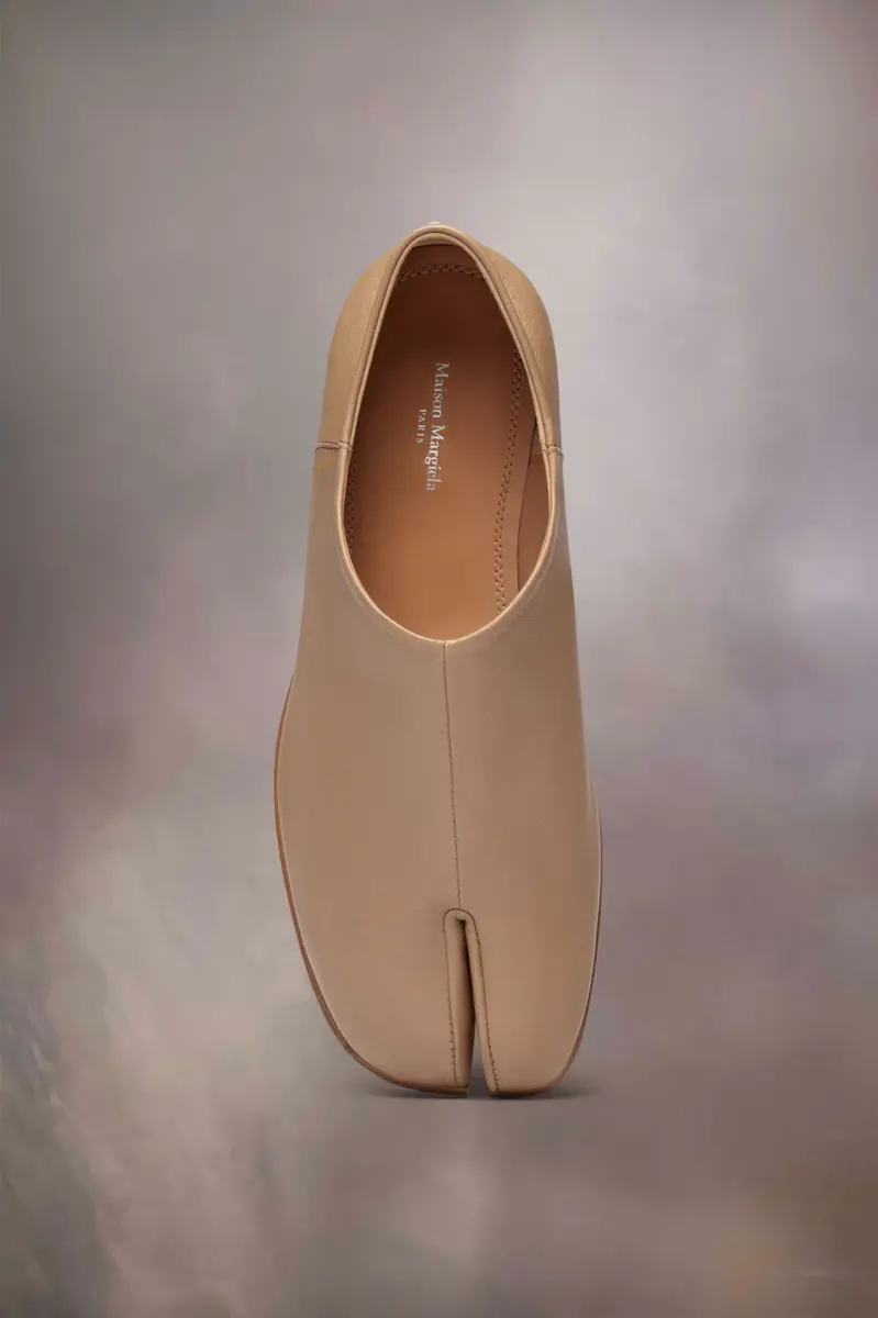 Crafted from soft nappa leather, the babouche shoes feature the Tabi split-toe, inspired by the traditional 15th century Japanese sock bearing the same name – launched for the Maison’s debut collection in 1989. It captures the avant-garde and insubordinate spirit of the Maison and exists as a heritage classic, continually explored through each collection.
