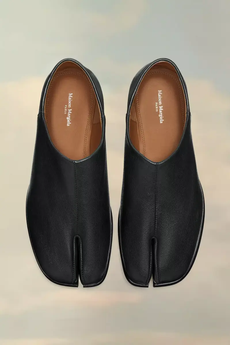 Crafted from soft nappa leather, the babouche shoes feature the Tabi split-toe, inspired by the traditional 15th century Japanese sock bearing the same name – launched for the Maison’s debut collection in 1989. It captures the avant-garde and insubordinate spirit of the Maison and exists as a heritage classic, continually explored through each collection.