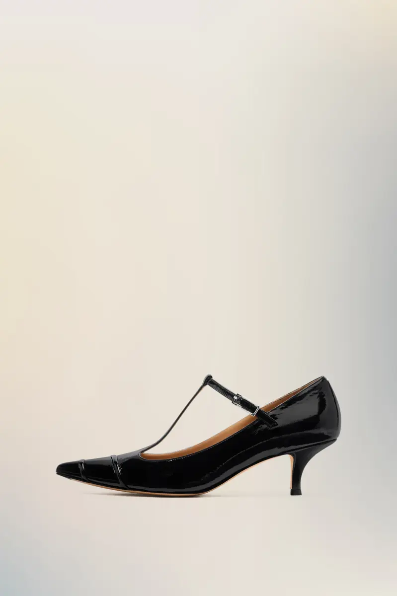 T-bar kitten heel pumps in glossy leather