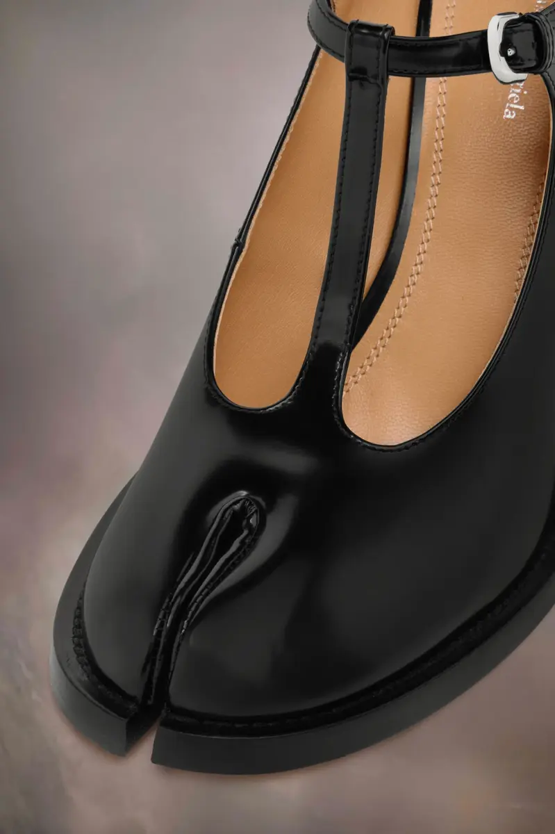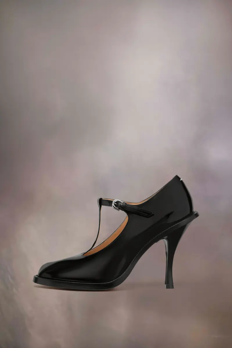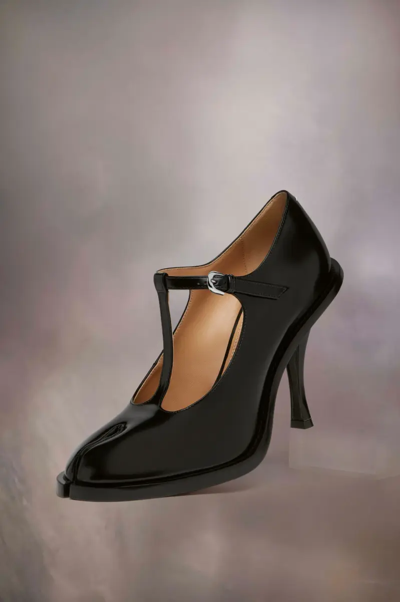 Crafted from brushed leather, the T-bar shoes feature a 10cm high heel, adjustable front strap and the iconic Tabi split-toe shape – launched for the Maison’s debut collection in 1989. To complete the design, Maison Margiela’s signature stitch appears at the back; the opposite of a label.