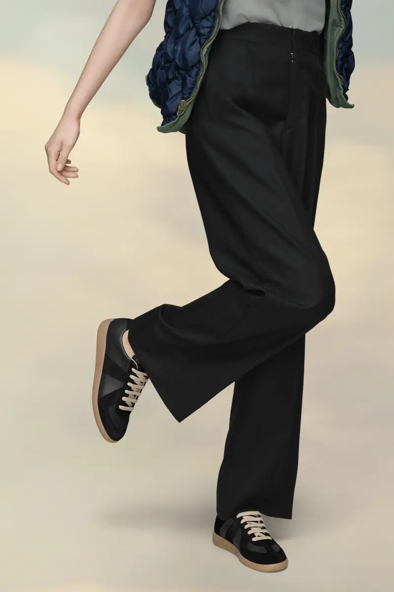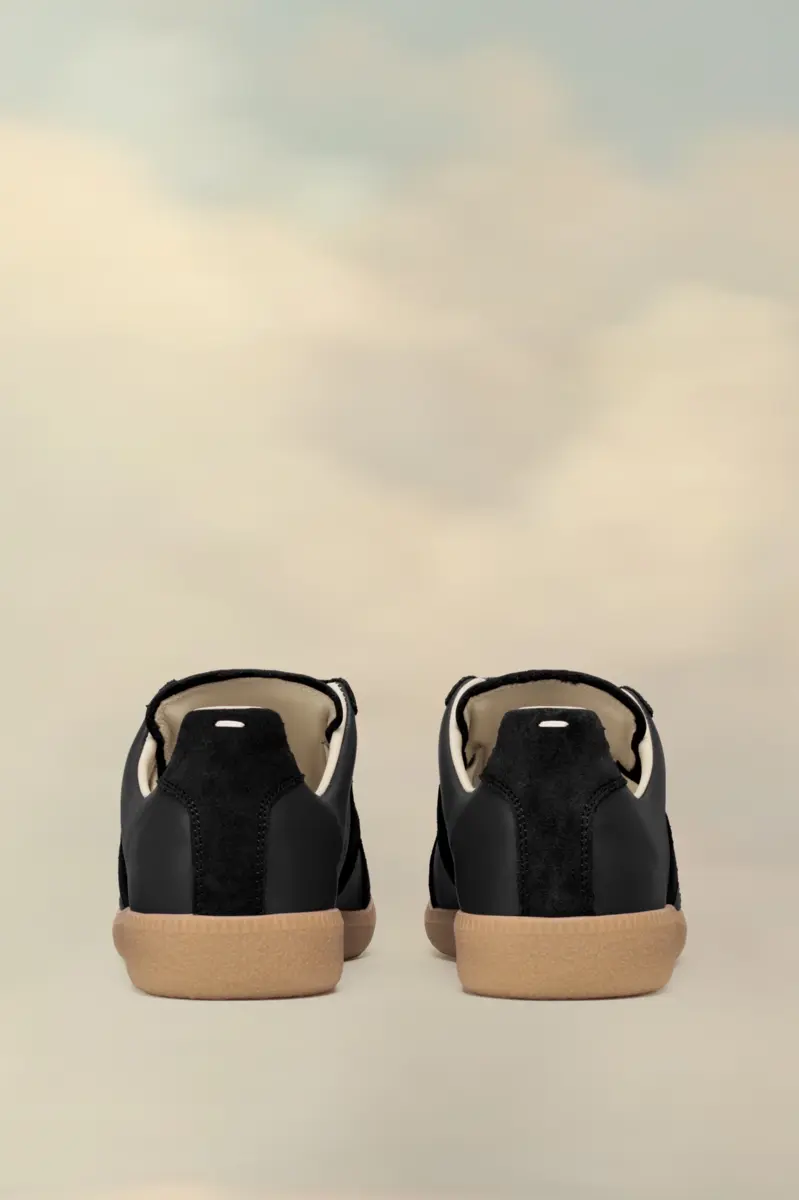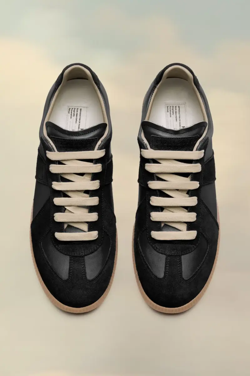 The Replica sneakers in nappa leather and suede with a honey sole. The Maison’s iconic Replica sneakers are inspired by Austrian sports shoes from the seventies. Details on the Replica pairs are continually reworked in line with the season’s inspirations.